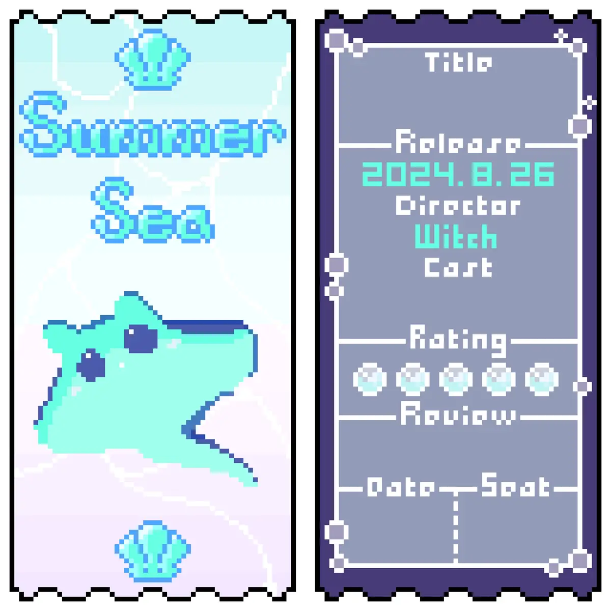 뒷면- 기념일 날짜, 리뷰, 캐릭터 이름 등