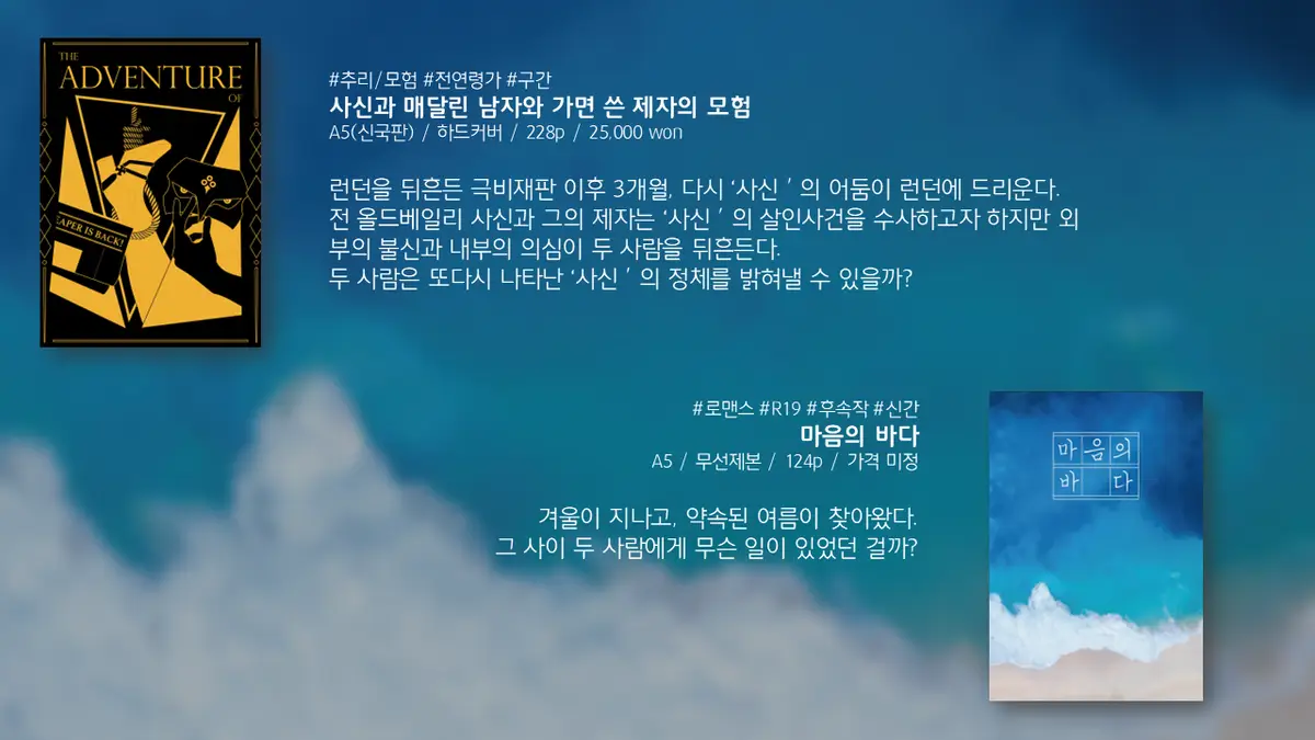 상품 1. 사신과 매달린 남자와 가면 쓴 제자의 모험 (25000원/1개)