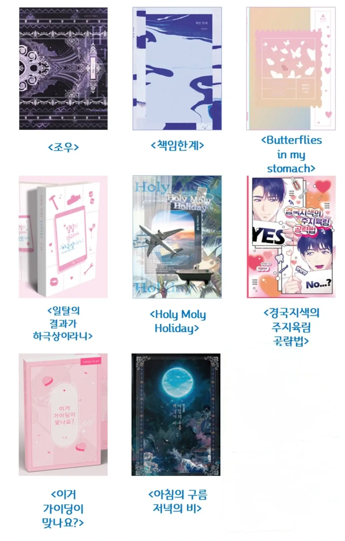 22년도~25년초까지 냈던 책들 이며 <노을이만 아는 이야기>를 제외한 나머지는 전부 성인본입니다.