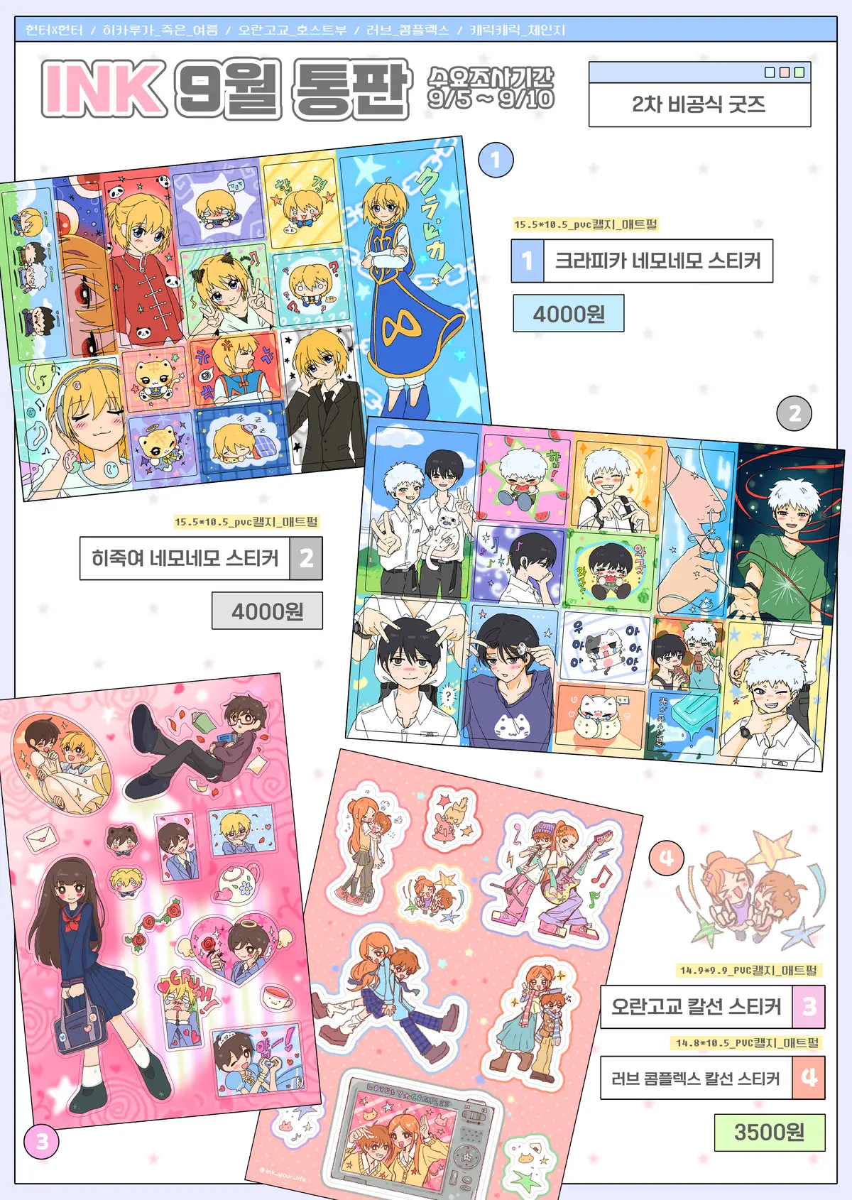 아래는 9월에 새로 제작한 굿즈들 기준의 샘플이미지입니다!