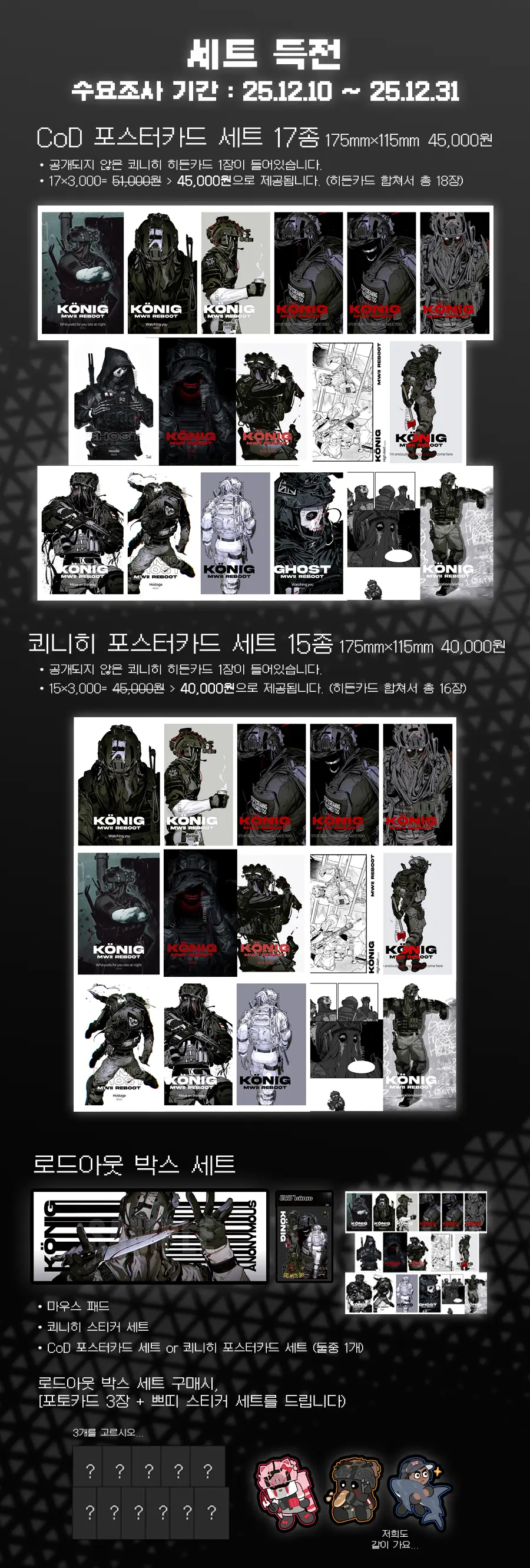 포스터카드들은 개별구매를 희망하시는 분들을 위해 수량조사 없이 별도로 챙겨 갈 예정입니다.