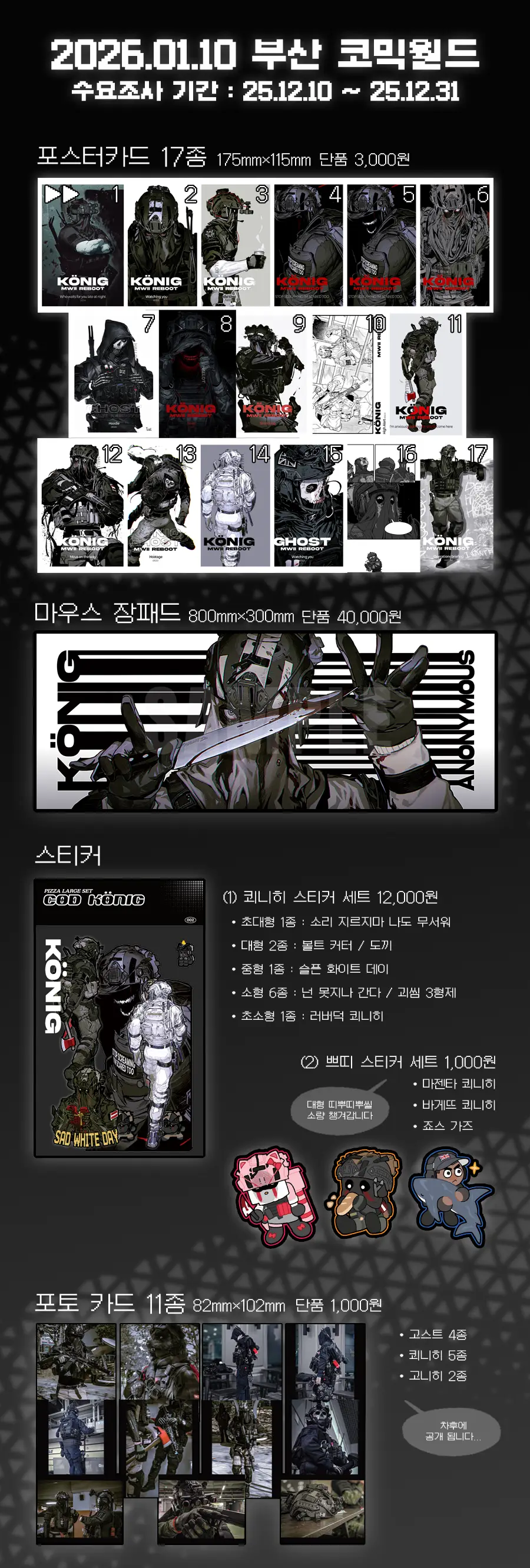 2026. 01. 10 토요일 부산 코믹월드 수량조사 폼입니다.