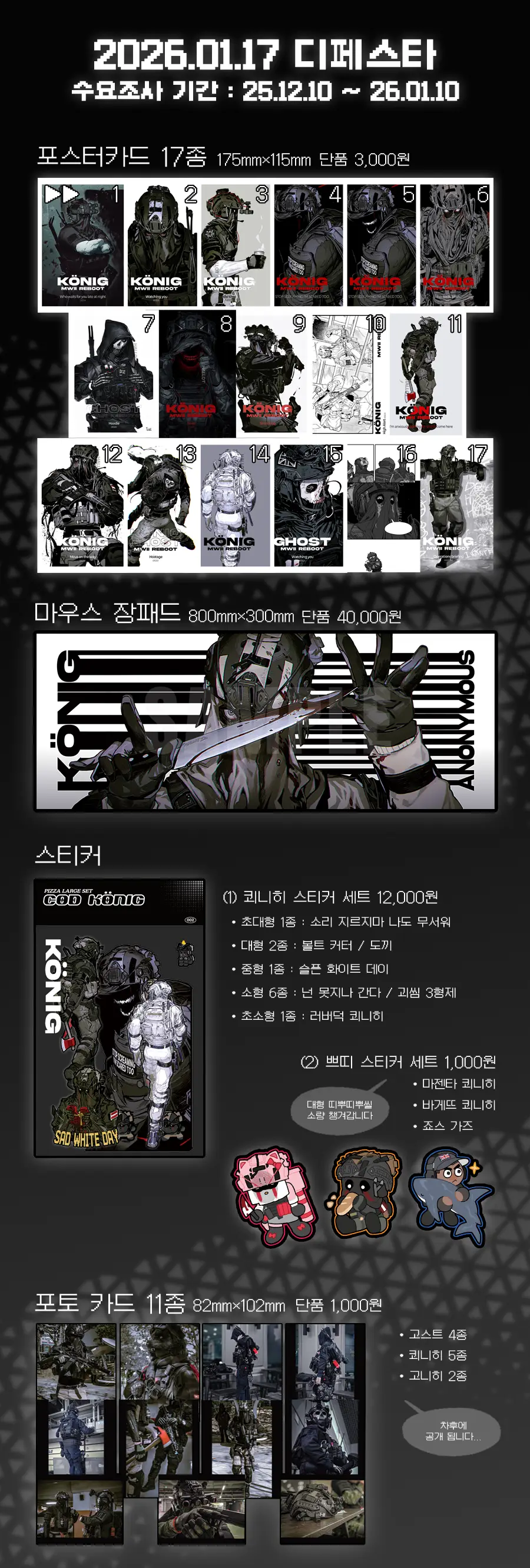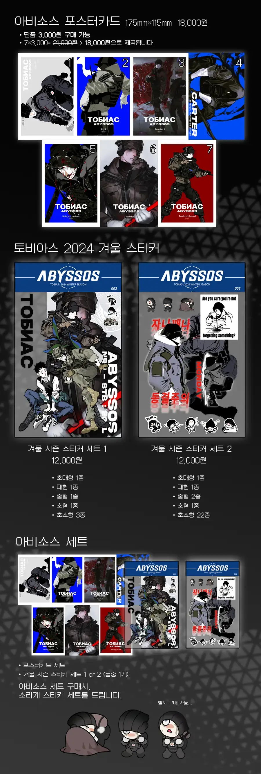 포스터카드들은 개별구매를 희망하시는 분들을 위해 수량조사 없이 별도로 챙겨 갈 예정입니다.