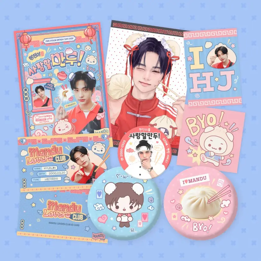 (메인포스터 엽서 + 팬아트 엽서 + 만두 아이디카드 + 스티커 2종 + 만두 마그넷 + 핀버튼 2종세트)