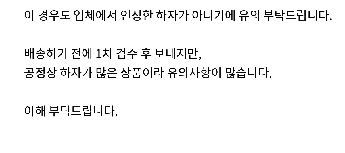 공정상 생기는 하자에 넓은 아량으로 이해 부탁드립니다. 감사합니다.