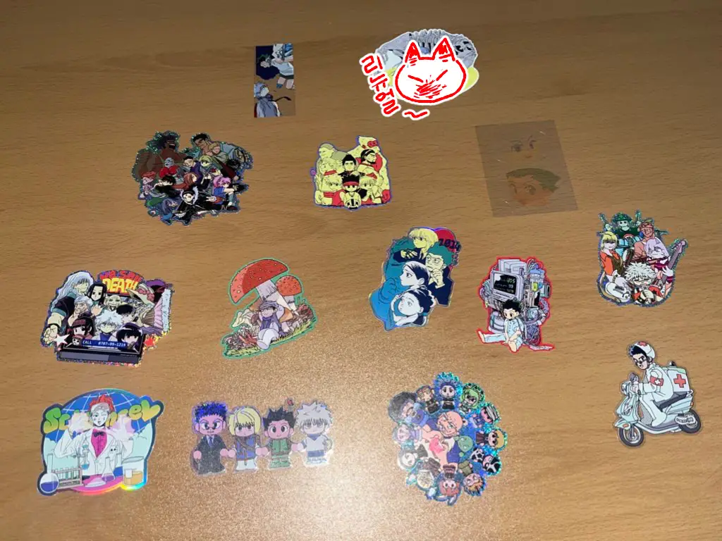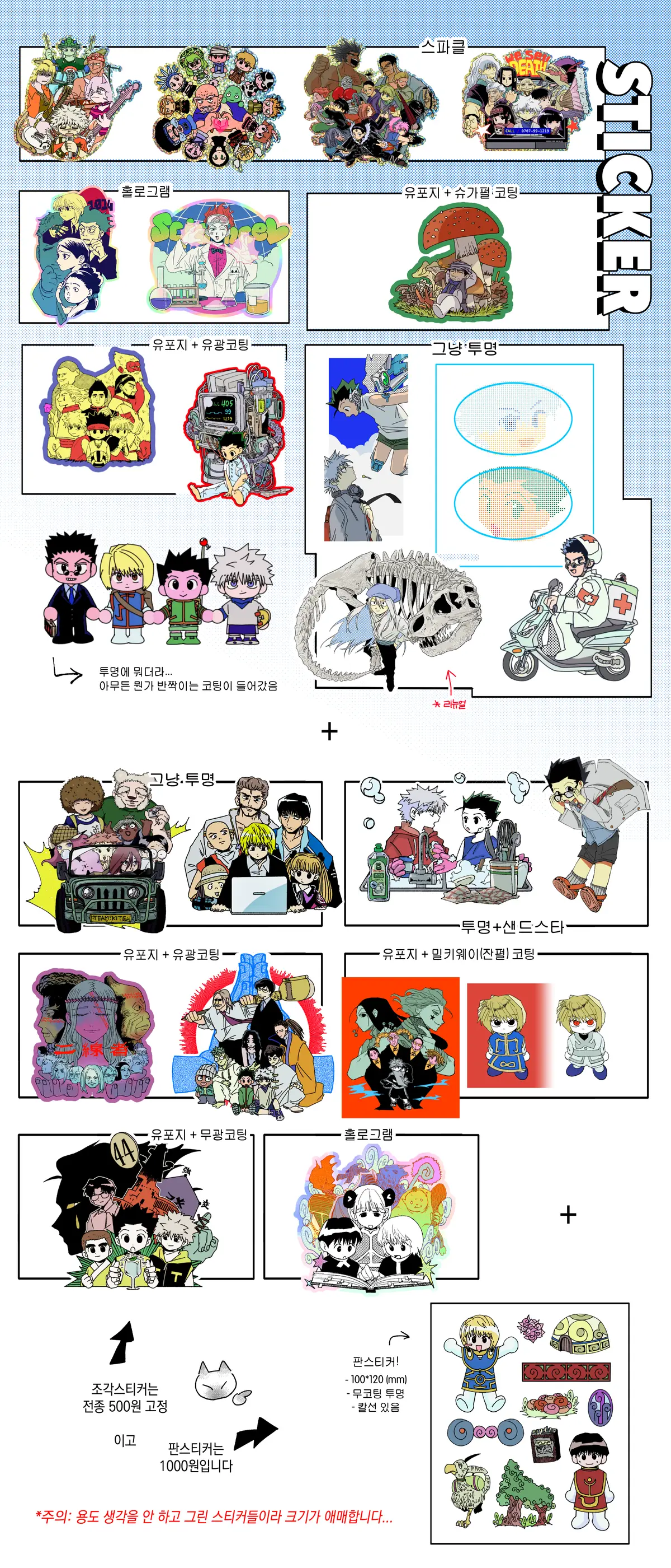 크기랑 옵션이 천차만별이지만 조각스티커는 전종 500원 고정입니다.