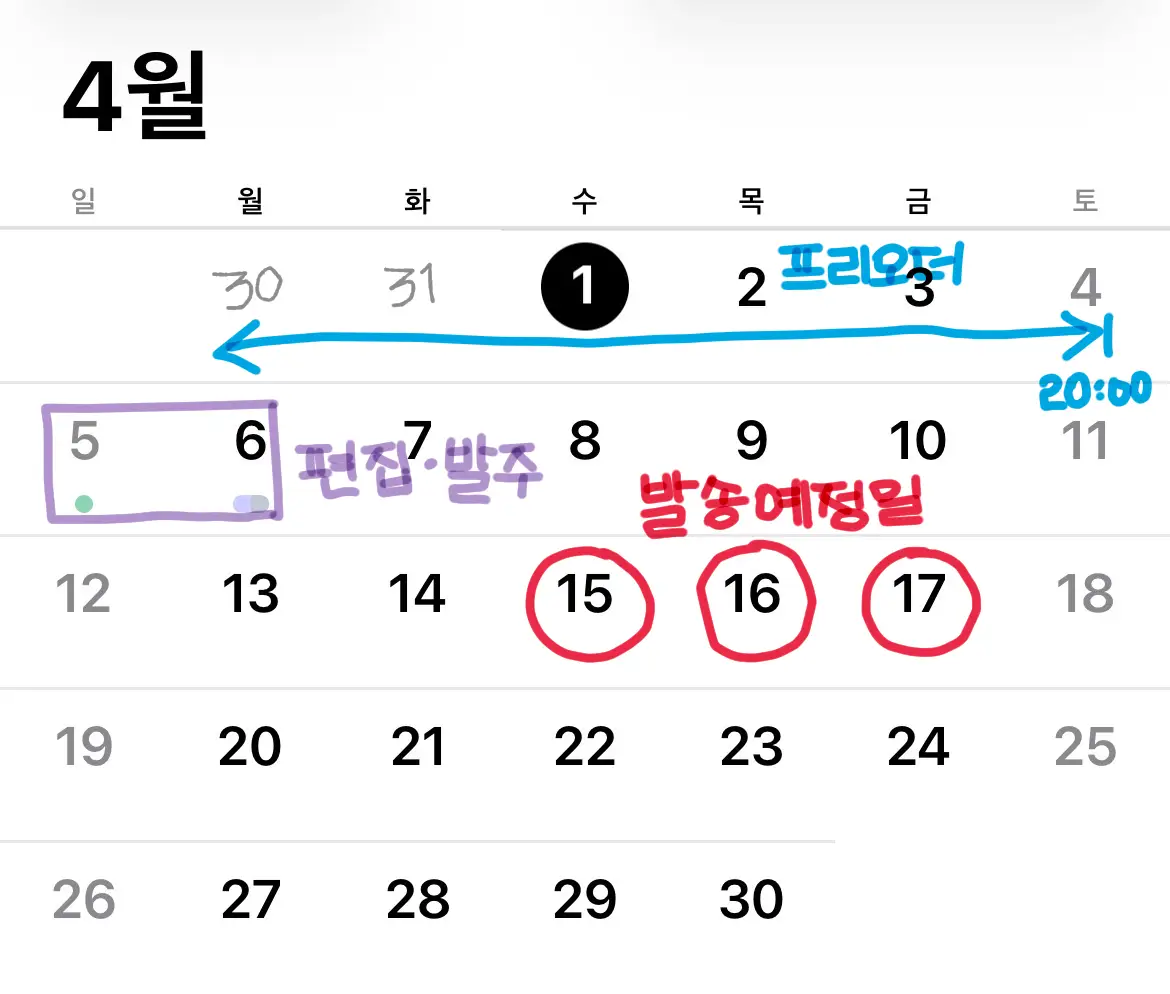 예상 일정은 다음과 같습니다.