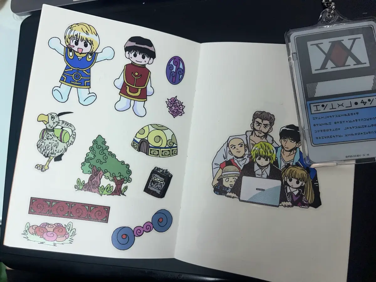 피구 스티커(저 보라색 테두리의 그것) 칼선이 좀 삐뚜름합니다.
