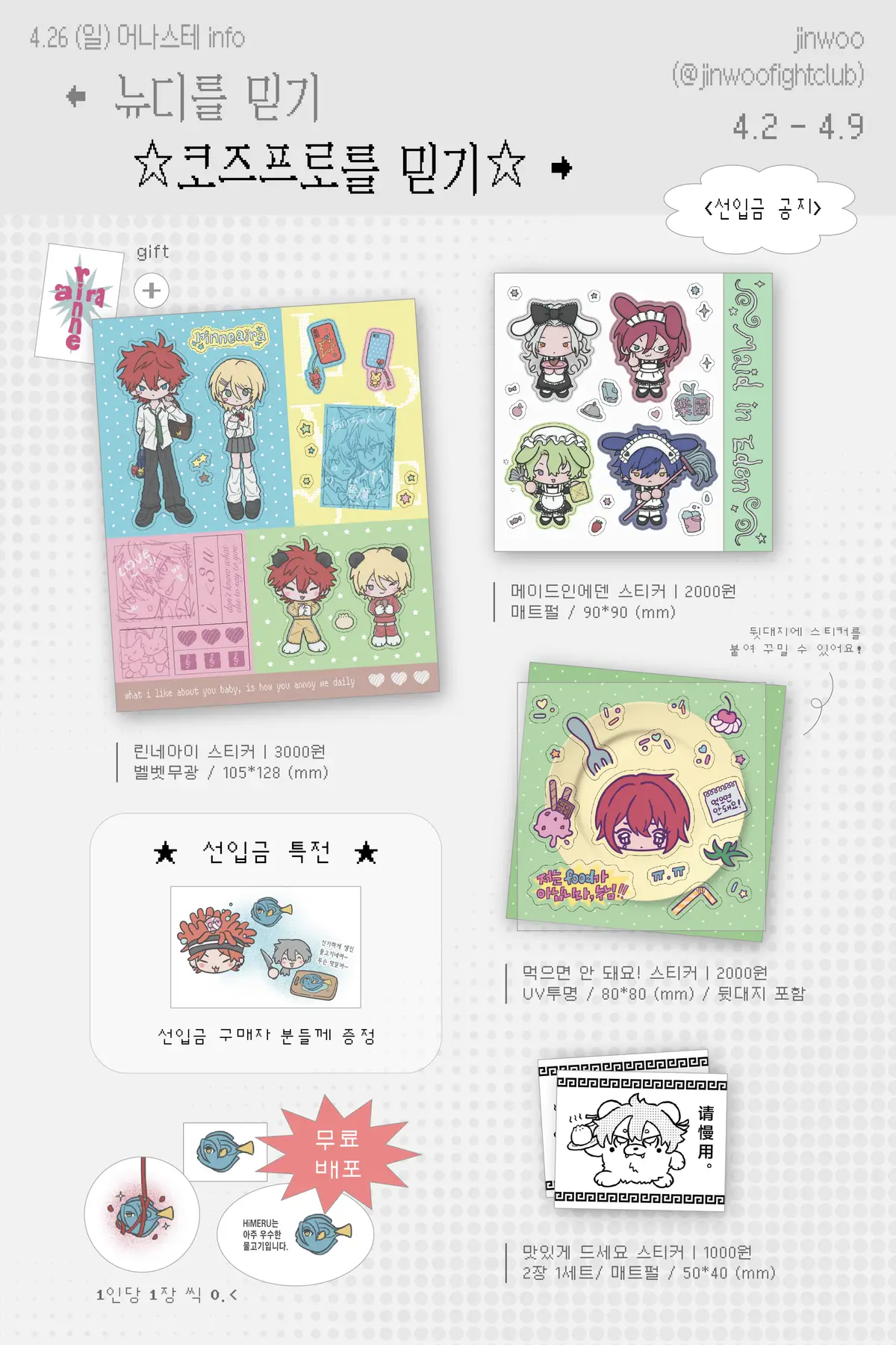 4월 어나스테에 나올 스티커의 선입금을 진행합니다.