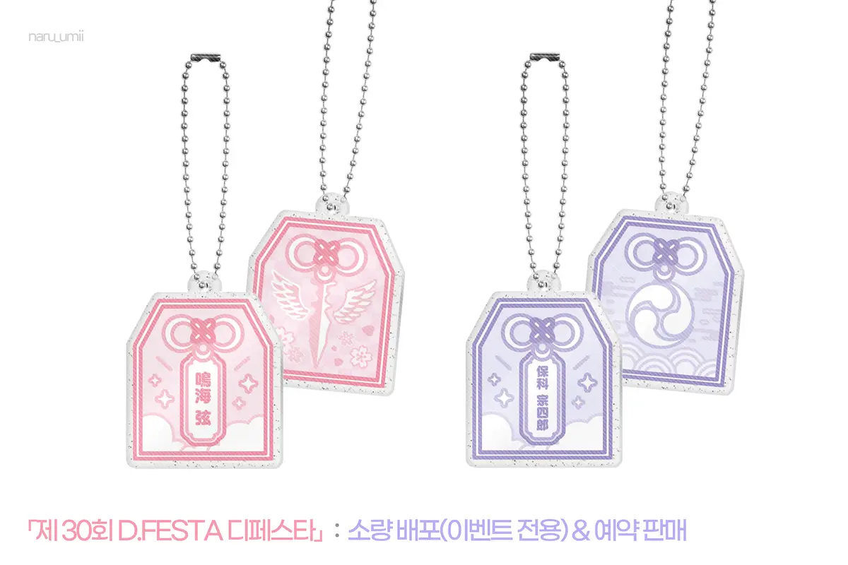 아크릴 키링|양면, 라미 인쇄|3×4cm|색상 군번줄 포함 (나루미 주문 시 분홍, 호시나 주문 시 보라)|개별 판매