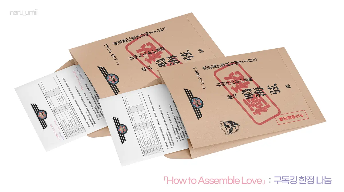 선착순 나눔 품목 : 나루호시 투명 프레임, 괴수 전단지 스티커 세트, 테이프 고급지 명함 세트 등