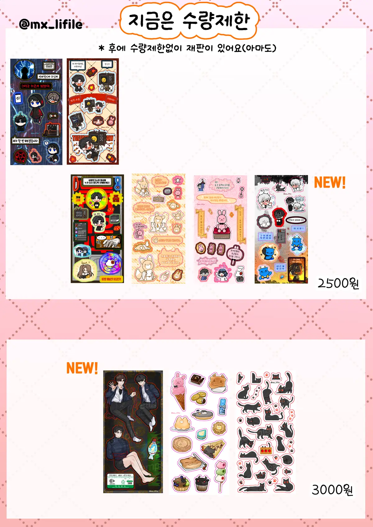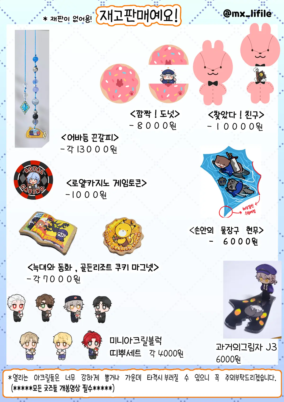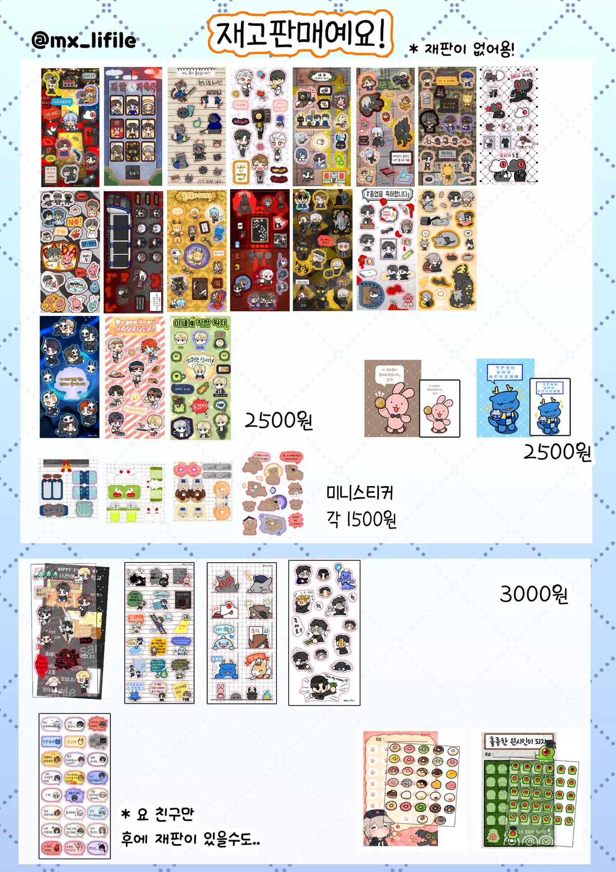 위의 재고들은 대부분 재고판매 이후 재판이 없을 예정입니다.