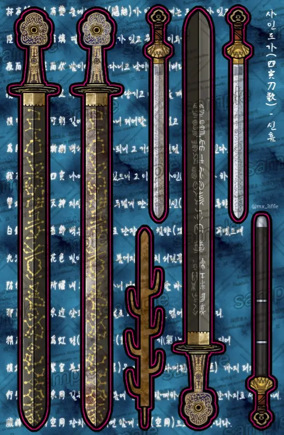 - [ 국립중앙박물관 / 철제 금은입사 사인참사검 / https://www.museum.go.kr/MUSEUM/contents/M0502000000.do?schM=view&searchId=search&relicId=8203]
