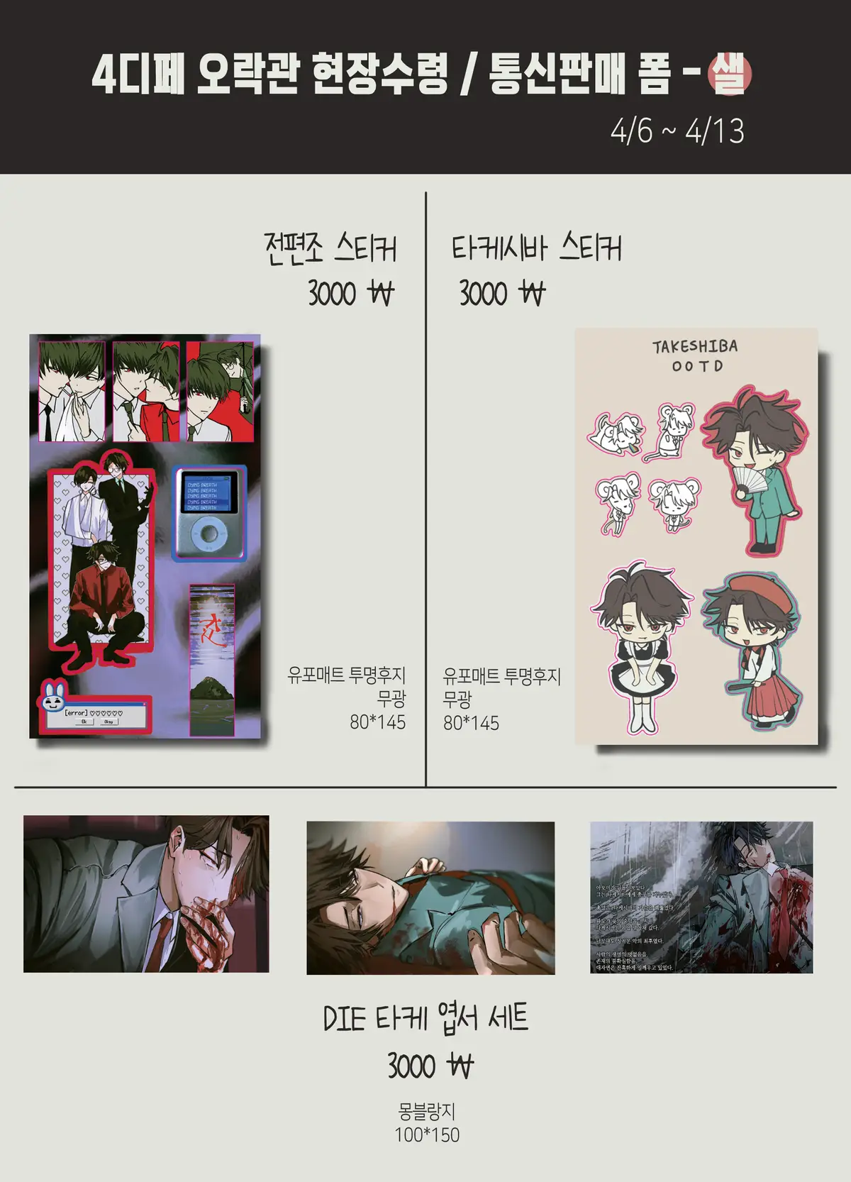 4월 26일 일요일 디페스타 오락관 현장수령 선입금 / 통판 폼 입니다.