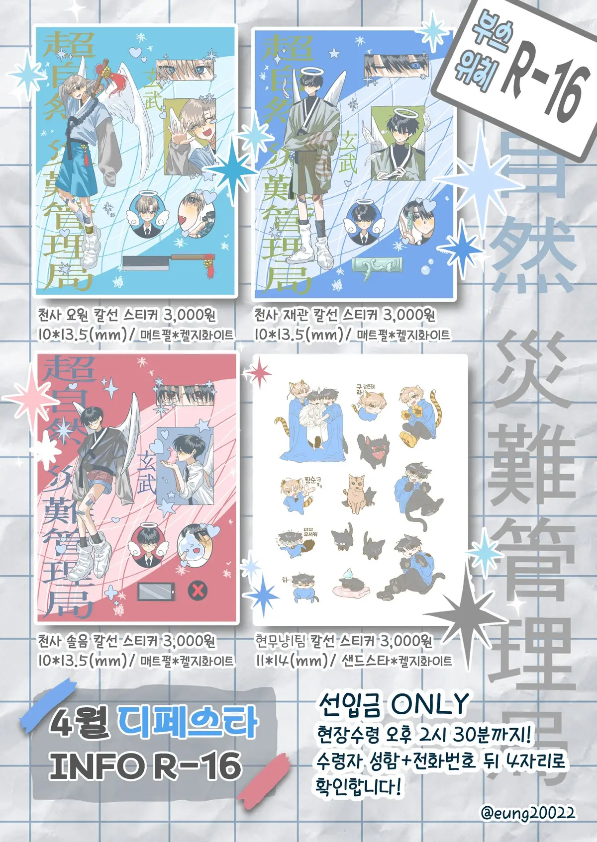 스티커는 행사 끝난 후 아크릴류와 함께 통판 예정입니다! 또한 7디페(일요일)에서 소량 재판을 진행할 가능성도 있습니다~(●'◡'●)