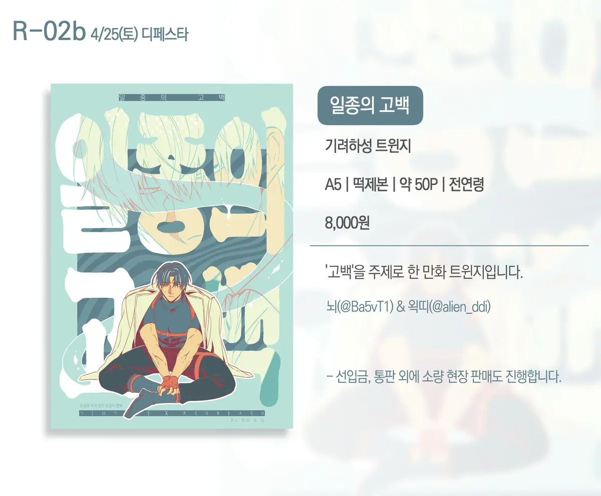 2026. 4월 디페스타 (토) 에서 판매 될 기려하성 트윈지 <일종의 고백> 현장 수령 선입금 폼입니다.