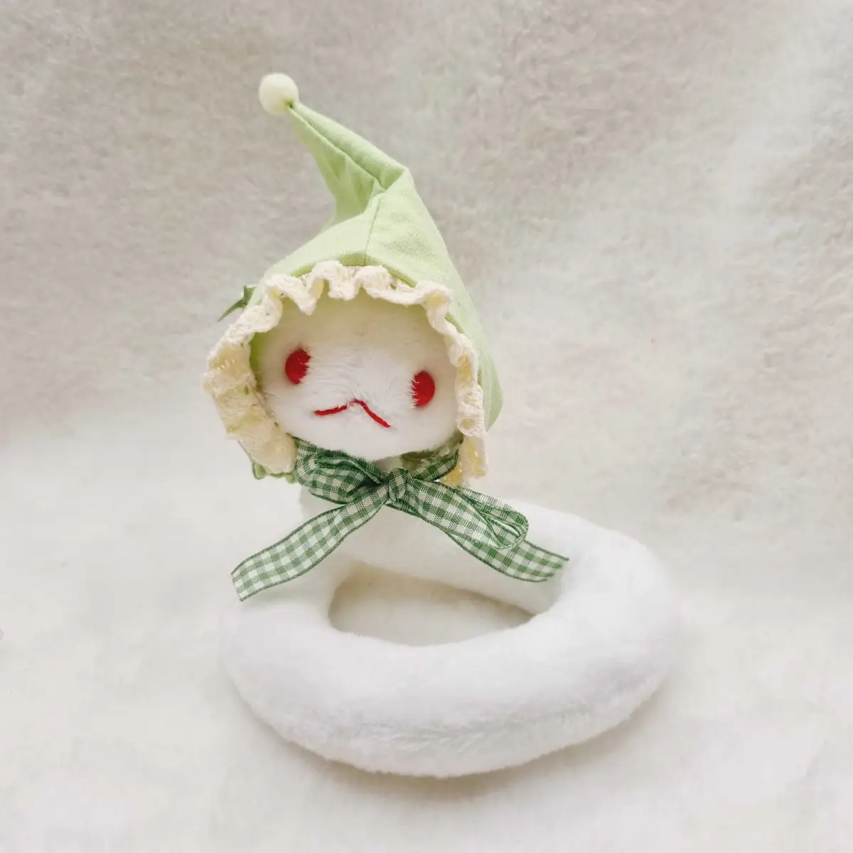 10깅 모자가 딱 맞았던 기존 뀨뱀과 달리 커스텀 뀨뱀에게 모자가 살짝 큰 편입니다. 참고 부탁드립니다!