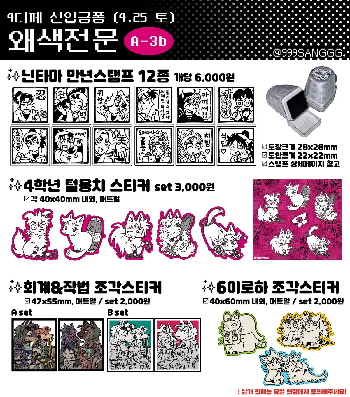 4디페(4.25 토) A-3b 부스 현장수령용 닌타마 비공굿 선입금폼입니다!