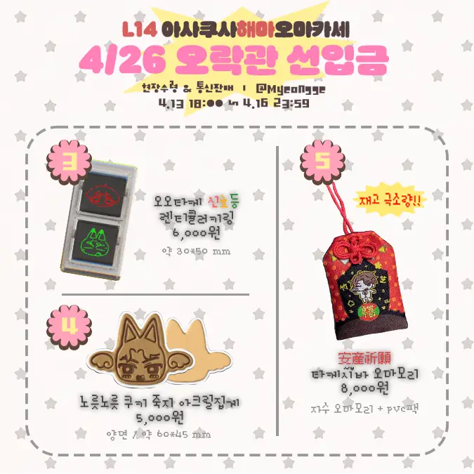 4월 26일 오락관 L14 [ 아사쿠사해마오마카세 ] 부스에서 판매될