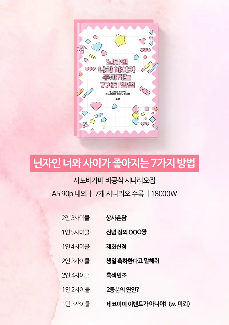 지속PC를 상정한 1-2인 시나리오 7편이 수록되며, PDF를 확인할 수 있는 QR코드가 포함됩니다.