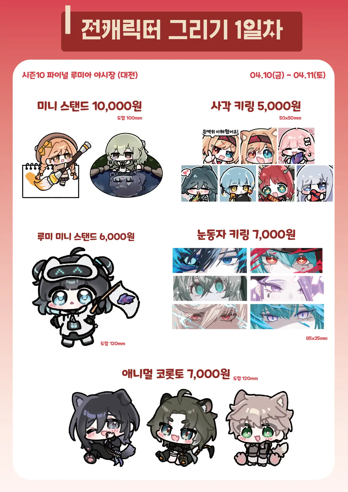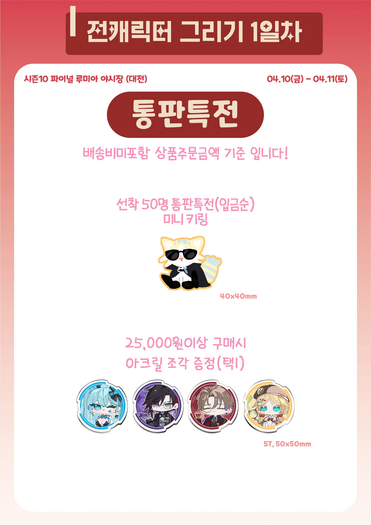 특전 아크릴 조각 전실험체 중에서 선택