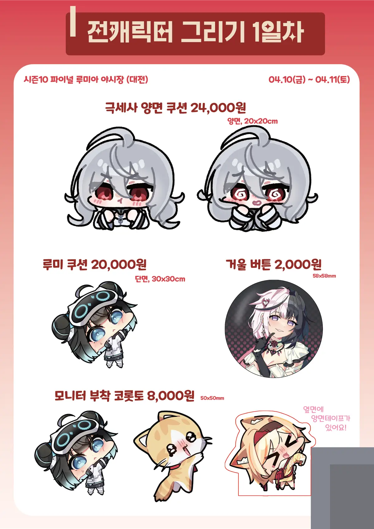 📌 마그넷을 구매하신 경우 꼭! 추가질문에 실험체 이름과 수량을 작성해주세요!