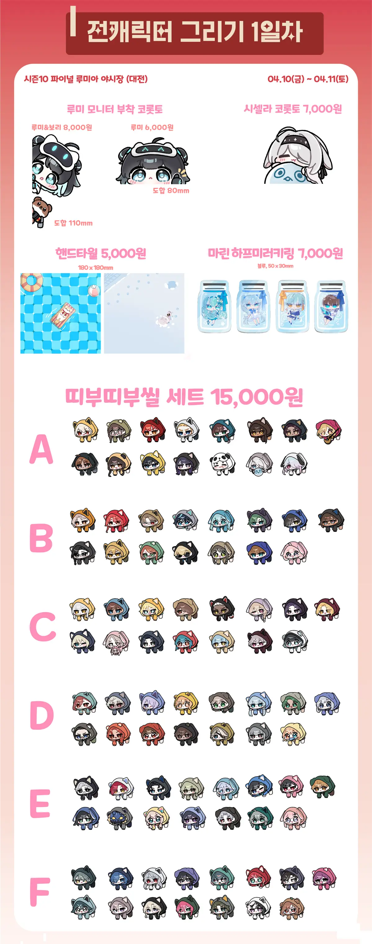 F조: 다르코 르노어 가넷 유민 히스이 유스 이슈 니아 슈린 헨리 블레어 미르카 펜리르 코렐 보리