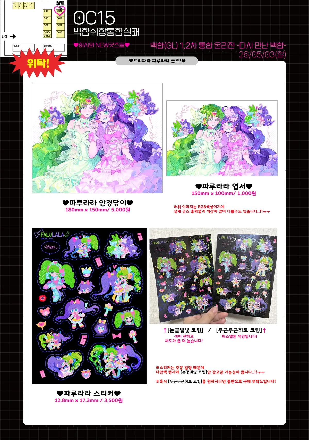 실제 굿즈 출력물과 색감이 많이 다를수도 있습니다..!!ㅠㅜ
