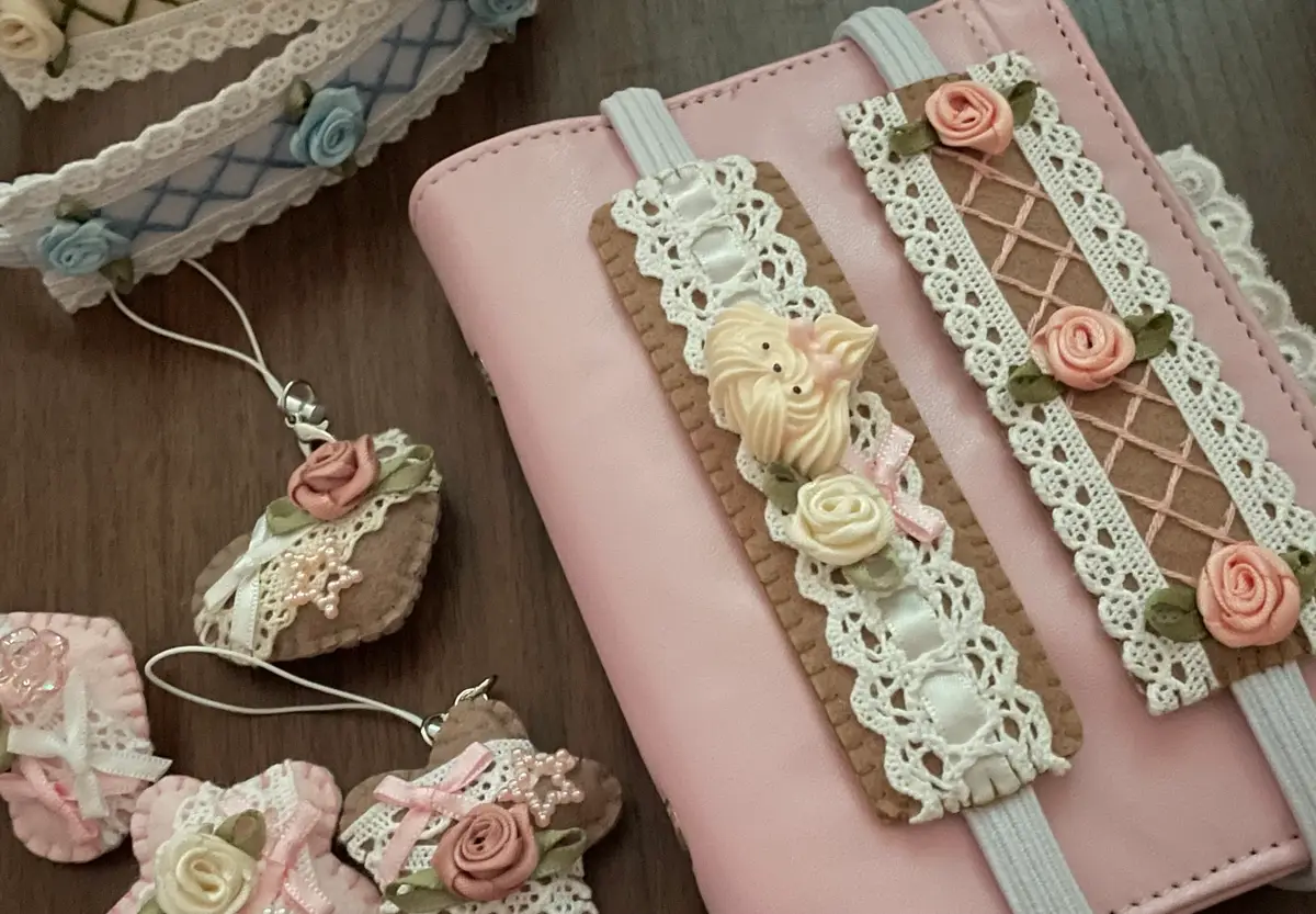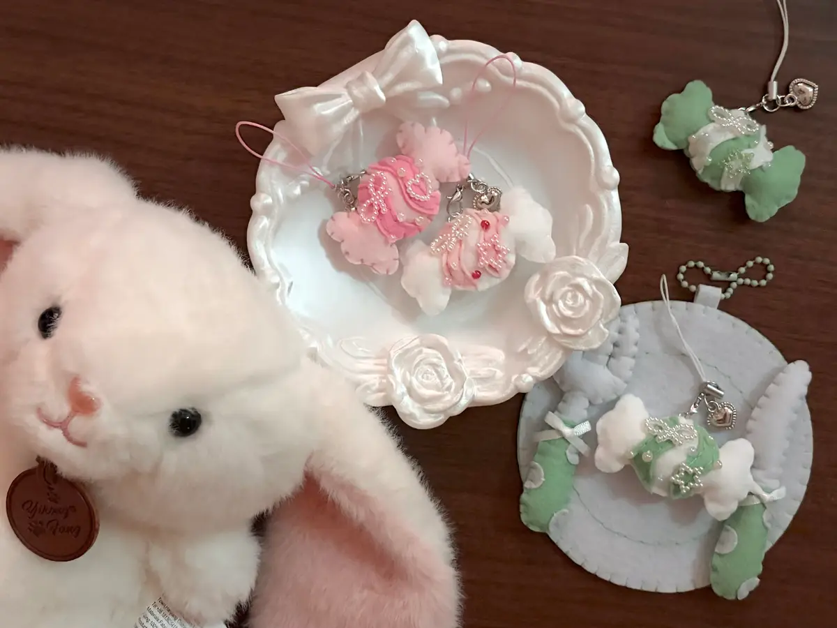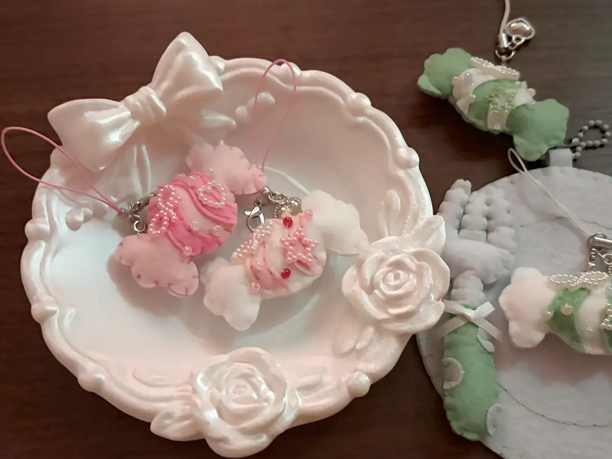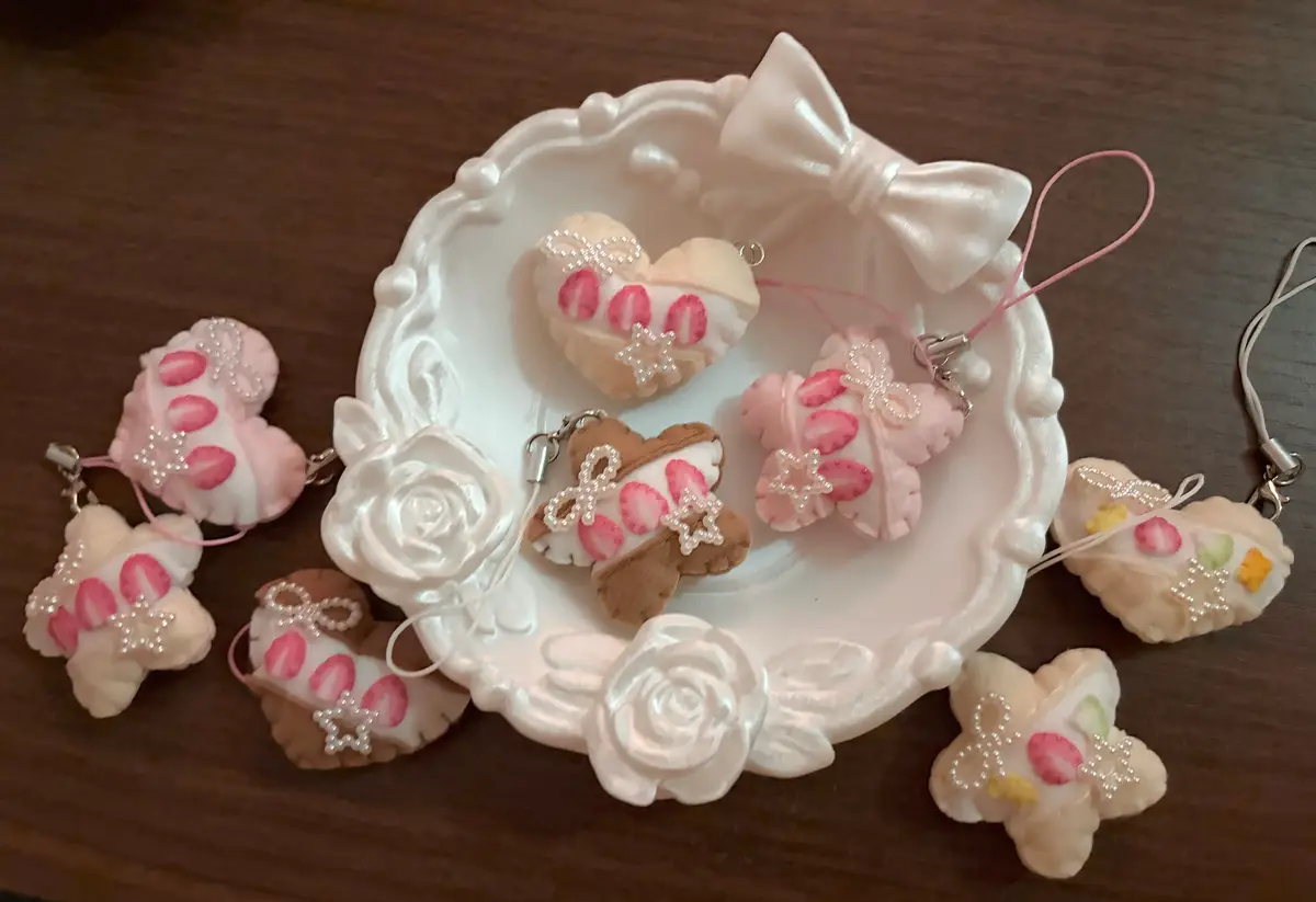 -주렁주렁 베이커리 키링입니다! 체크 무늬 버터쿠키와 원형 쿠키가 주렁주렁 달려있어서 귀여워요!! 딸기잼 부분 무늬는 랜덤으로 증정됩니다!