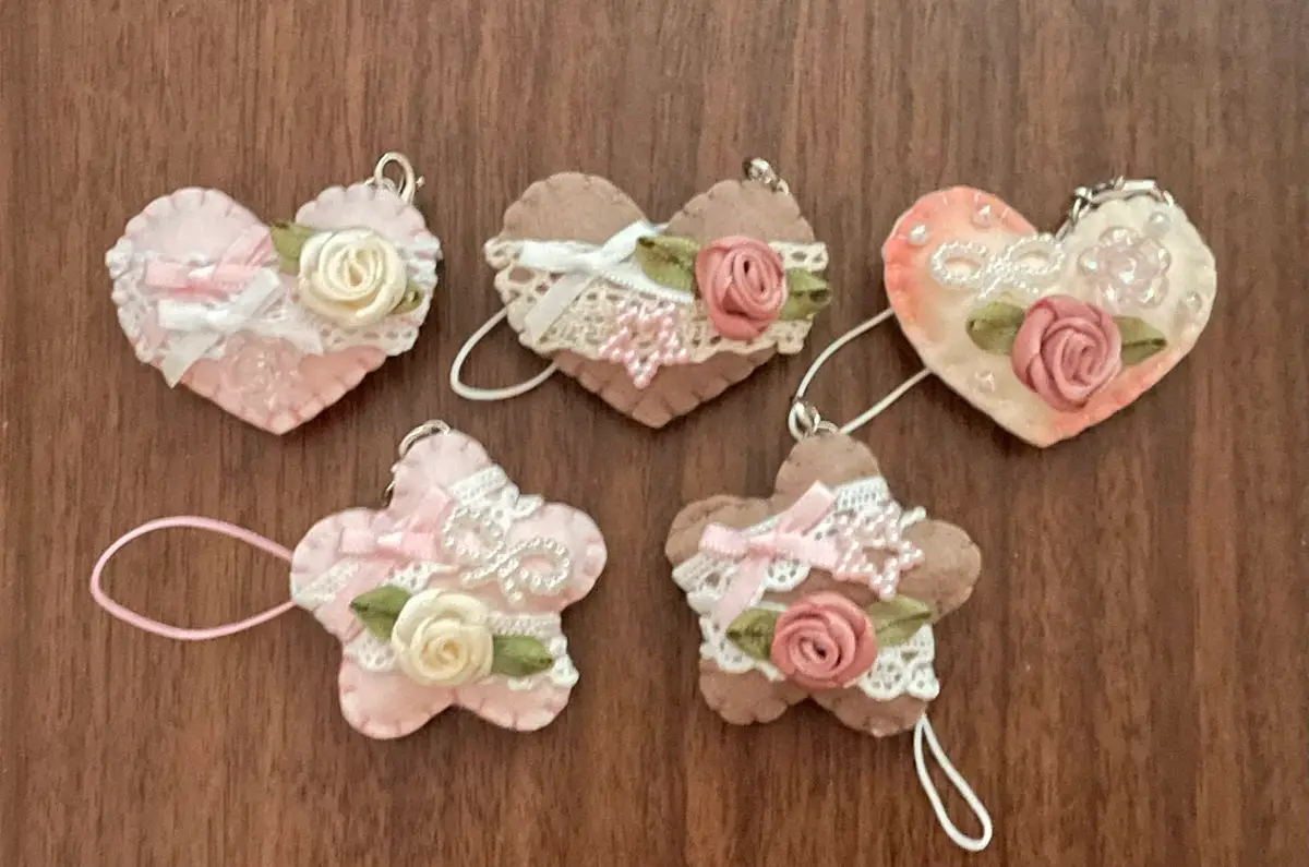 -순서대로 핑크 하트 / 초코 하트 / 코랄 하트 / 핑크 별 / 초코 별 옵션입니다