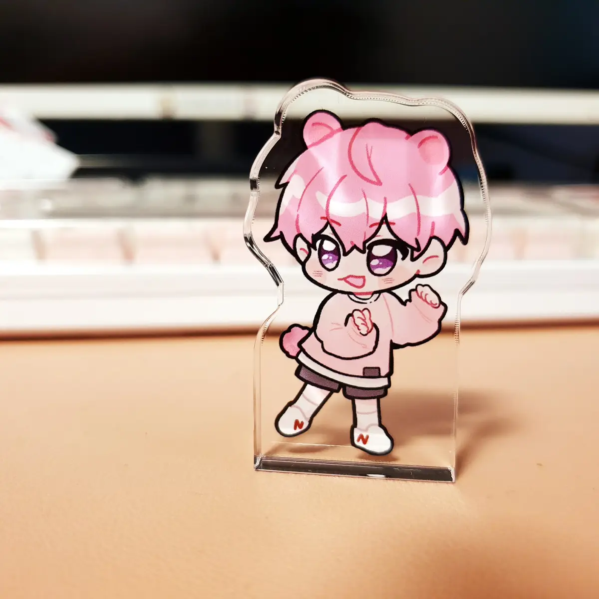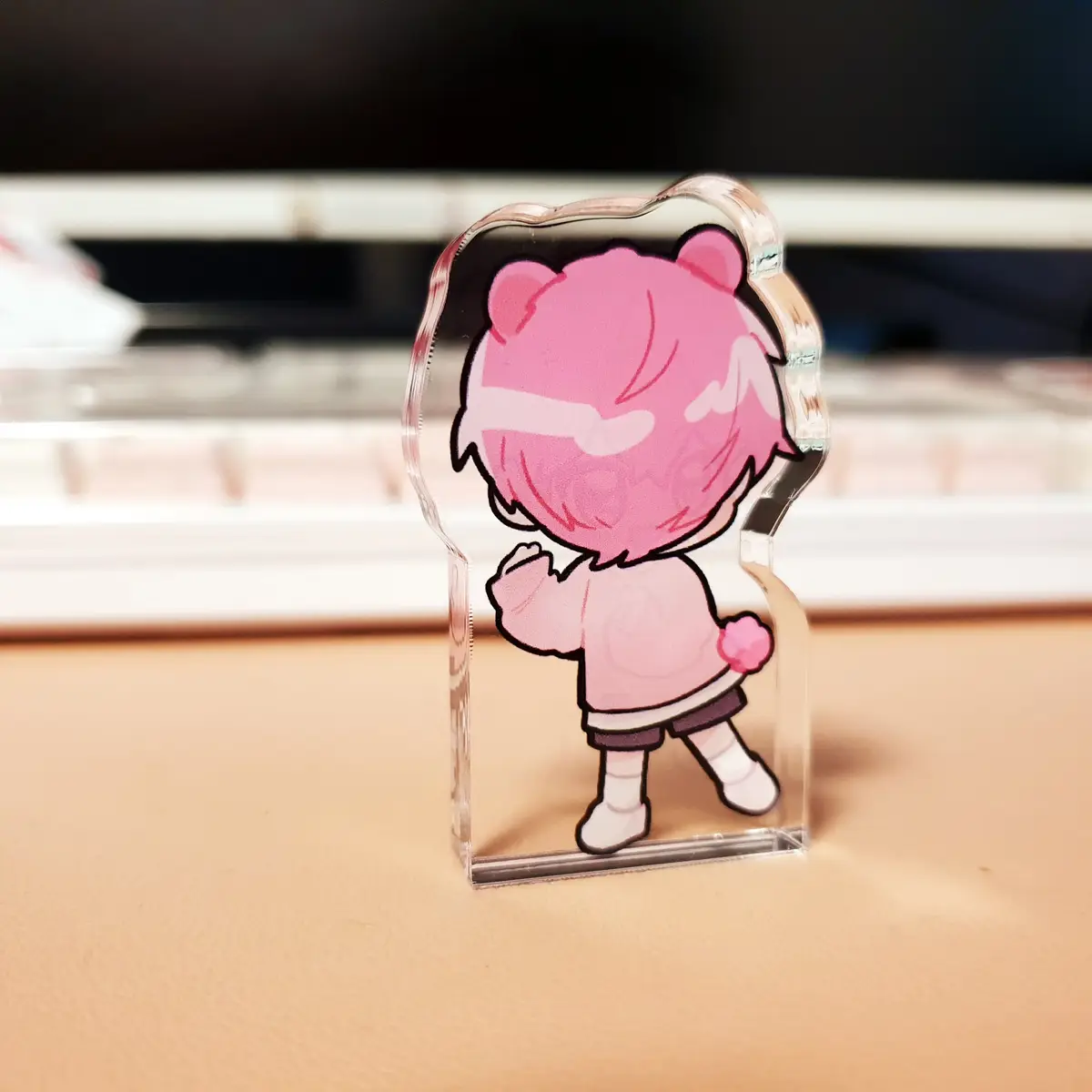 자립이 가능한 아크릴 스탠드로, 약 1cm에 가까운 두께입니다.
