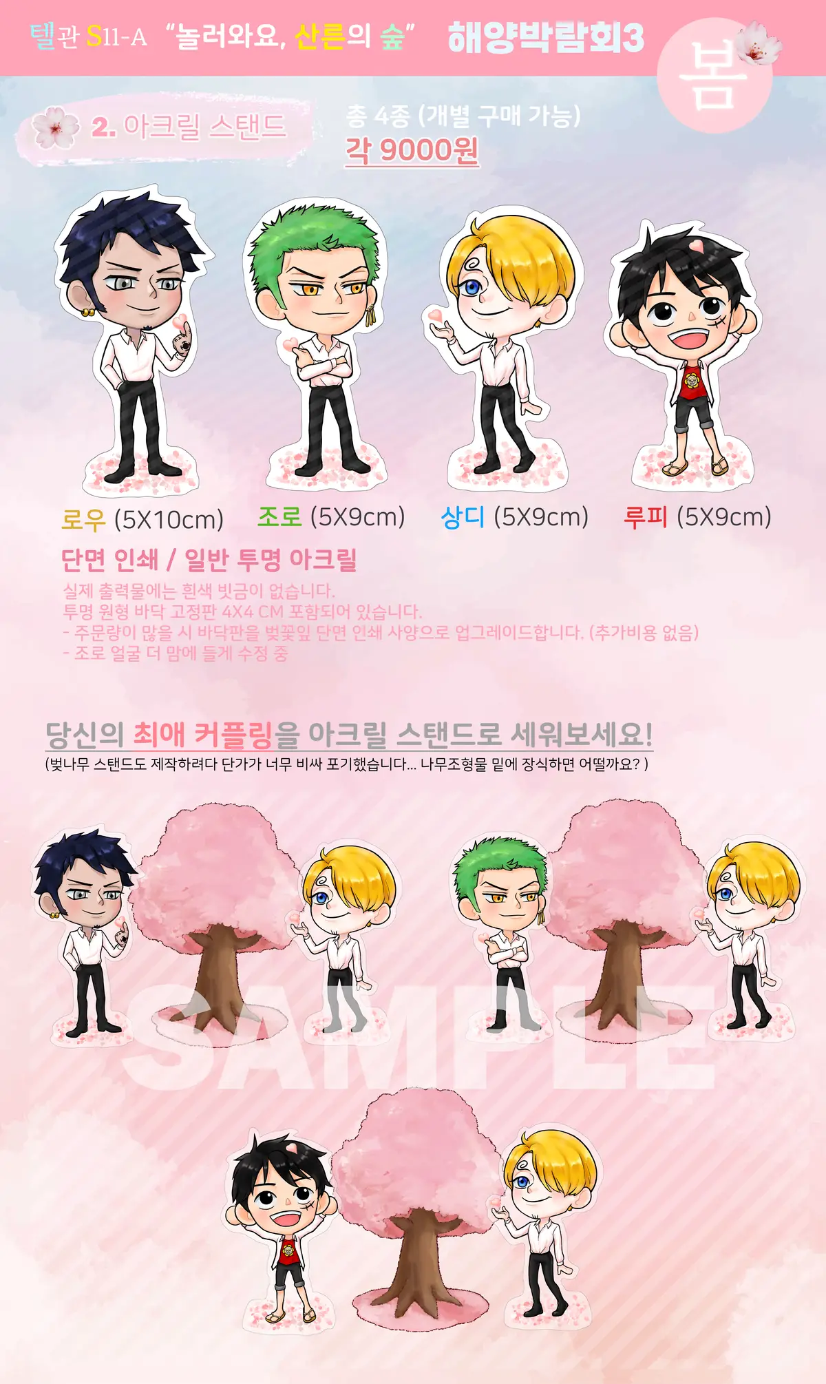2. 아크릴 스탠드 개당 9000원 (5 X 10 cm)