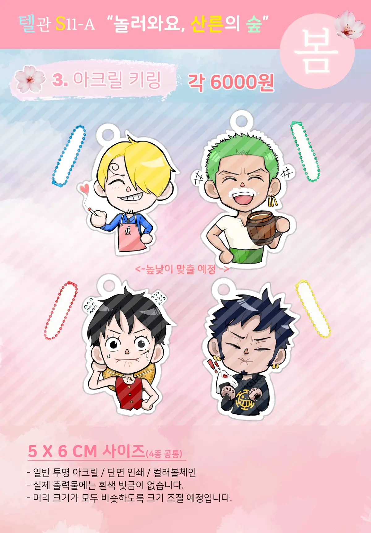 볼체인으로 나가고 색깔은 캐릭터별로 상징색으로 정해두었습니다.