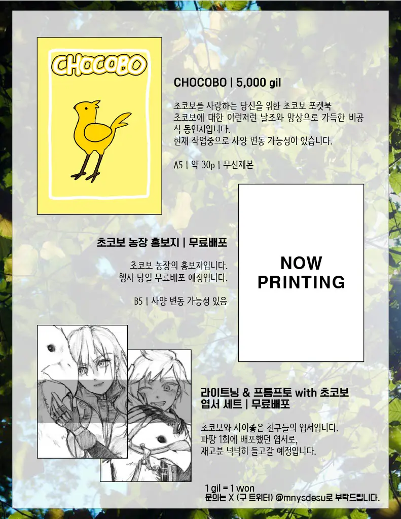 파팡2 지11 부스에서 판매할 초코보 포켓북 [CHOCOBO] 의 샘플입니다.