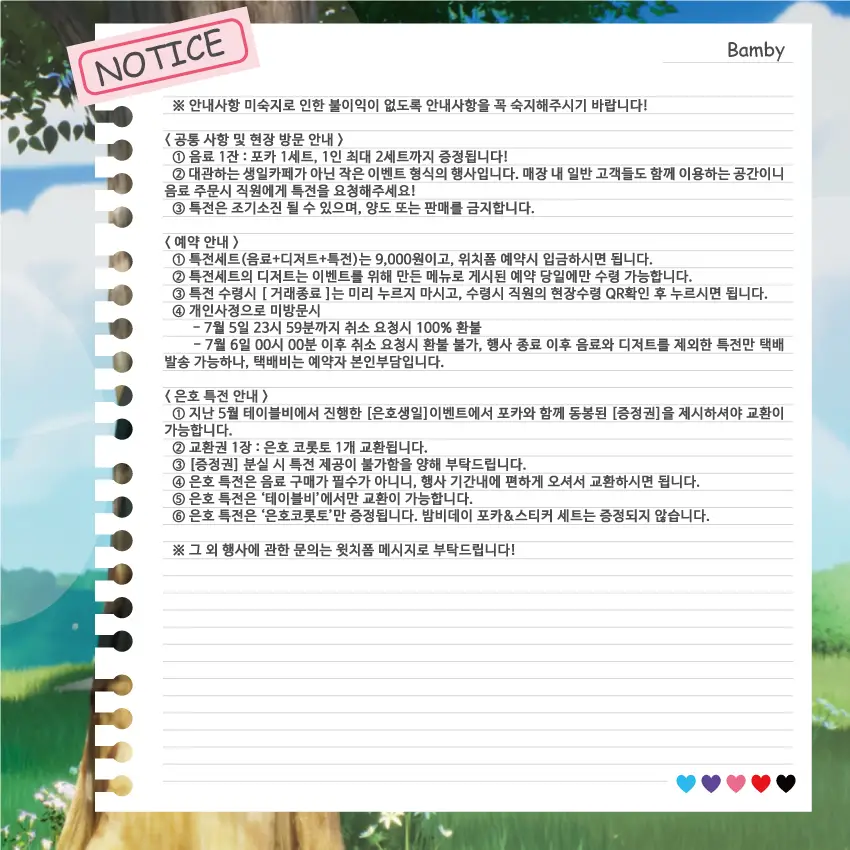 ※ '은호특전'은 '테이블비'에서만 수령 가능하니, 예약과 함께 수령을 원할 시 꼭 6일로 예약해주세요.