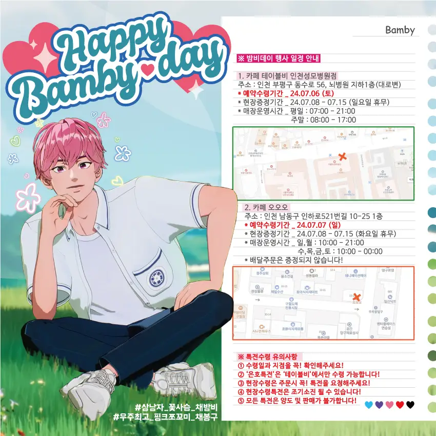 ※ 예약 특전 수령 일자에 따라 수령 받는 카페가 다르니 참고 부탁 드립니다.