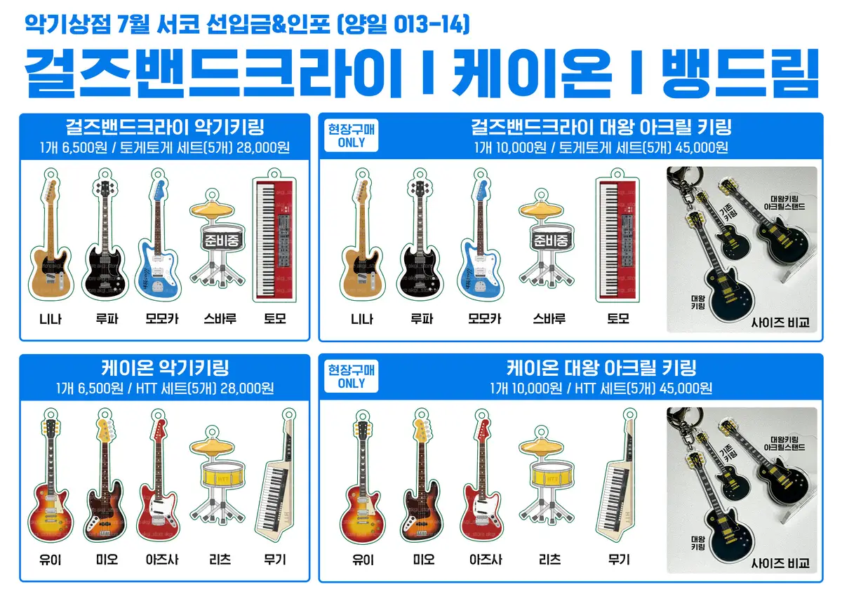 이미지 외에도 캐릭터 키링, 뱅드림 악기키링, 일반 악기키링 등