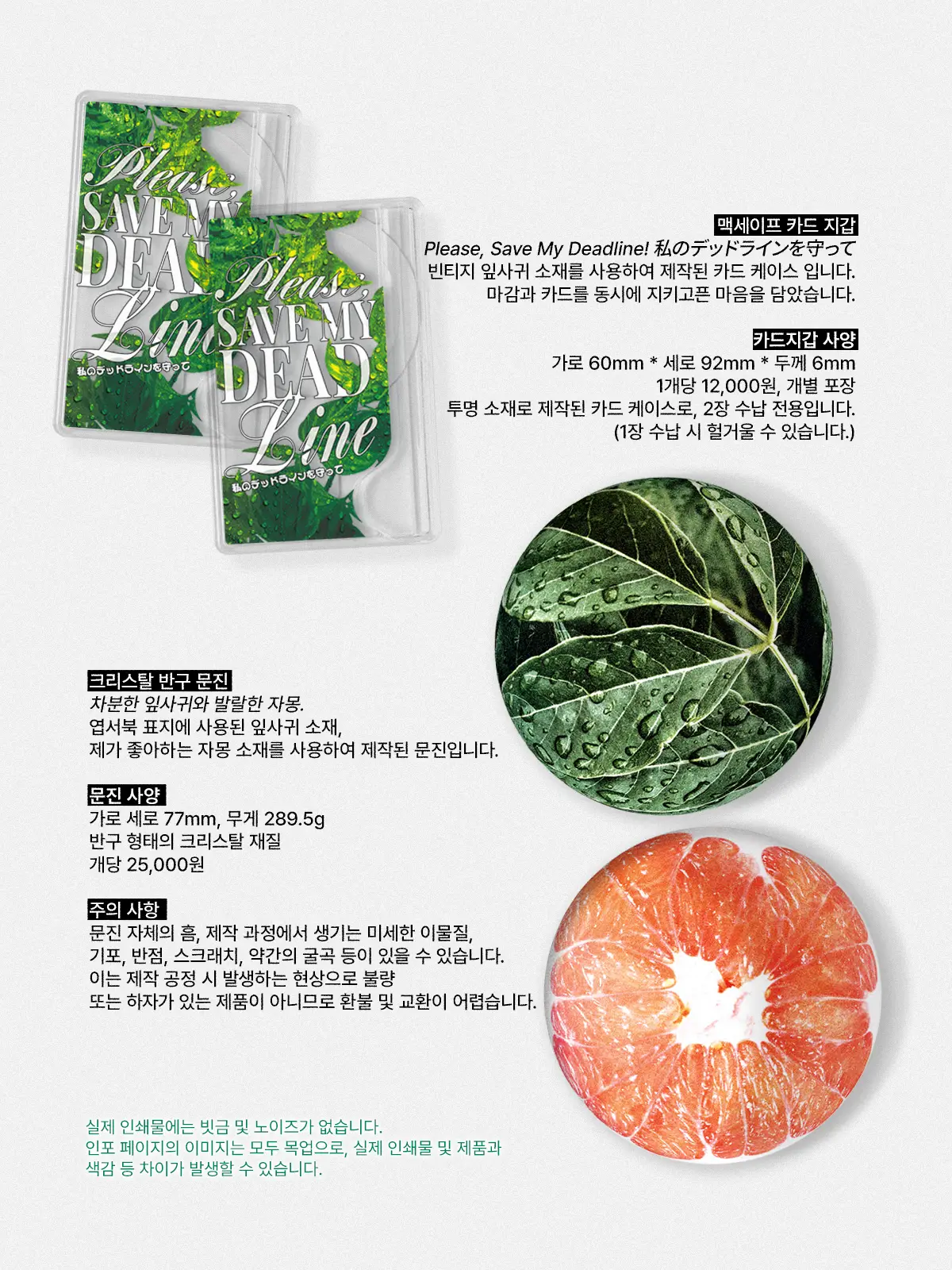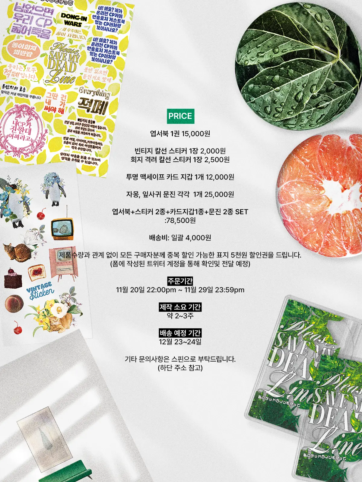 모든 굿즈는 주문 후 일괄 제작되므로, 단순 변심으로 인한 환불이 어려운 점 양해 바랍니다.