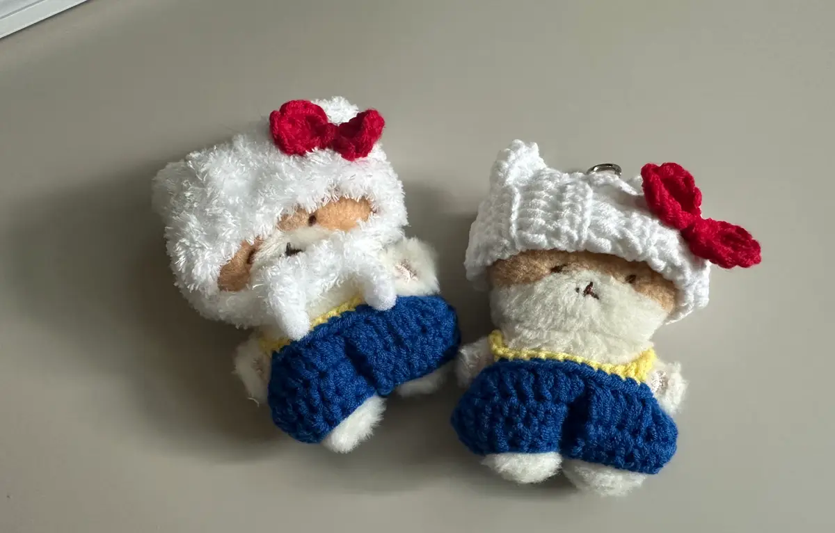 1. 핸드메이드 특성상 사이즈나 디테일에 차이가 있을 수 있습니다. 글루건 또는 본드로 마감을 하고 있어 뜨개옷에 딱딱한 부분이 있을 수 있습니다.