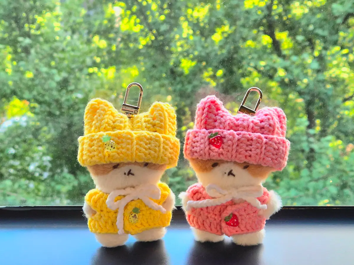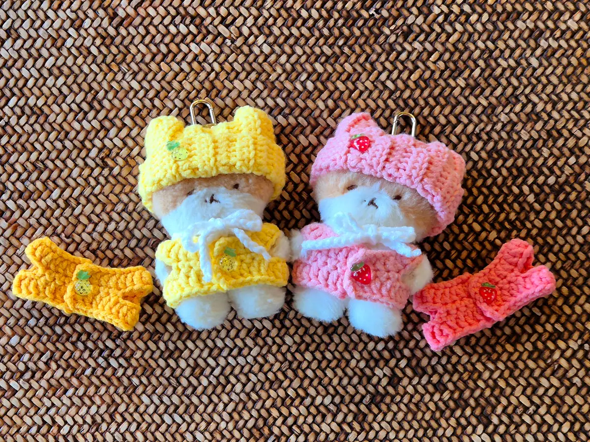 이번에는 세트로만 진행 되며 종류는 딸기 케이프 세트1(조끼가 분홍), 딸기 케이프 세트2(조끼가 진분홍) 그리고 파인애플 세트(조끼가 노랑) 3종류로 진행 됩니다. 진노랑 조끼는 진노랑 색상의 실 재구매를 진행하지 않을 예정이라 ㅠㅠ 판매에서 제외했습니다