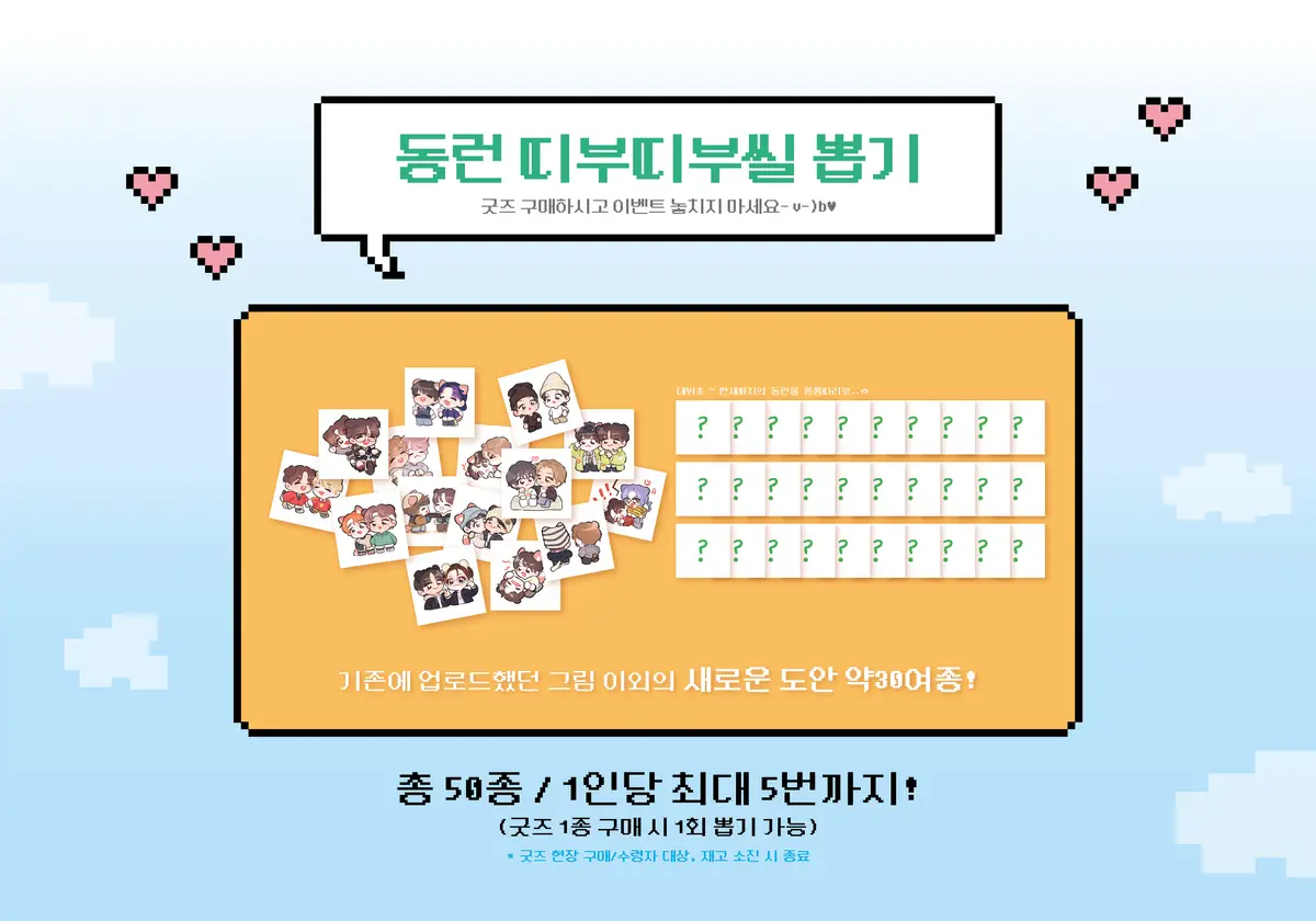 총 50종의 띠부띠부씰 뽑기를 진행합니다 !!