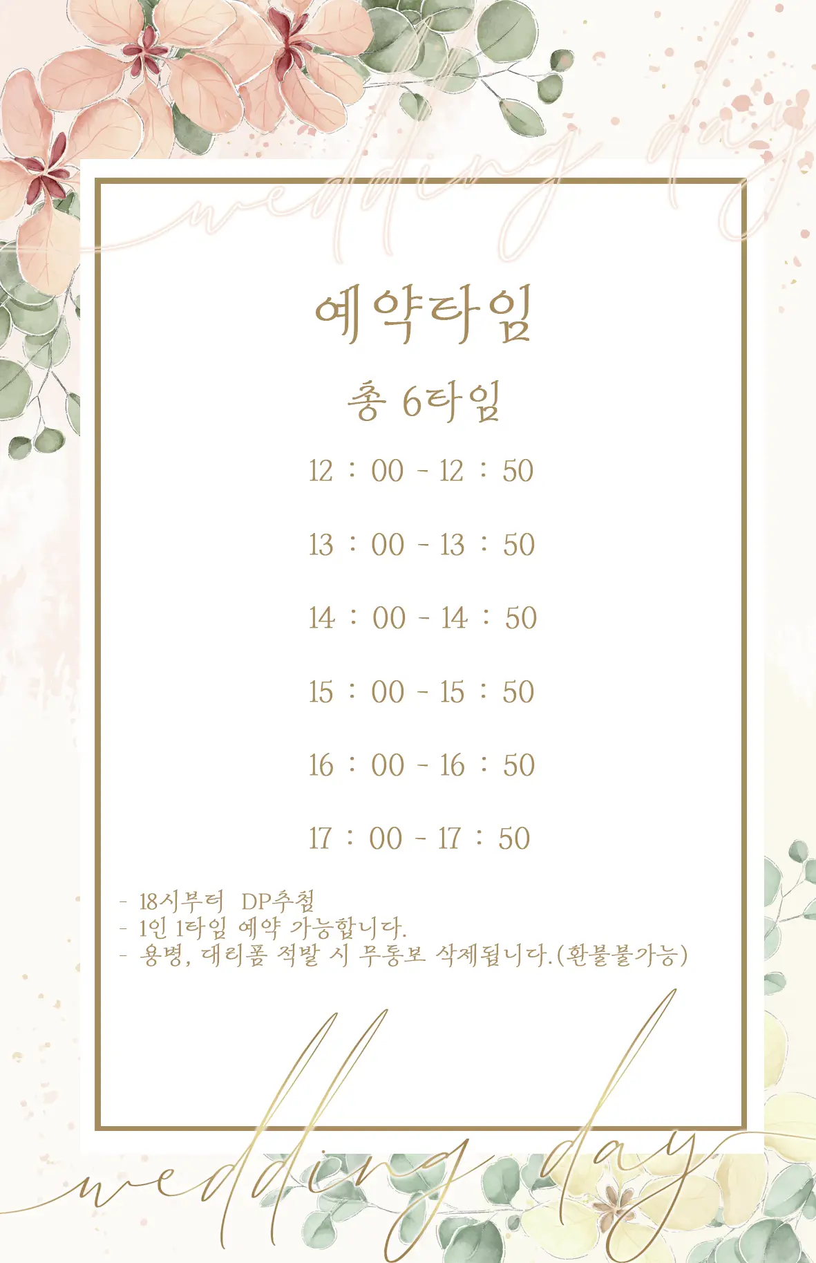 - 예약 후 입금은 30분 내로 부탁드립니다.