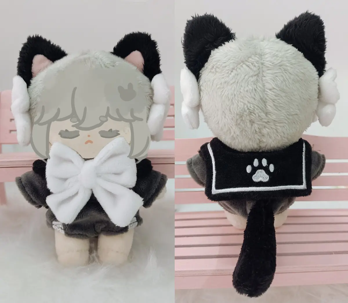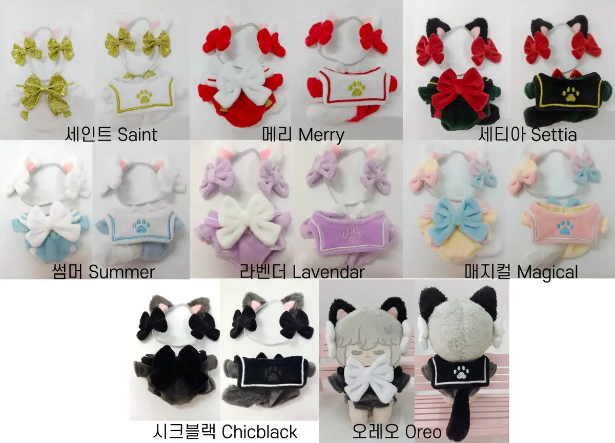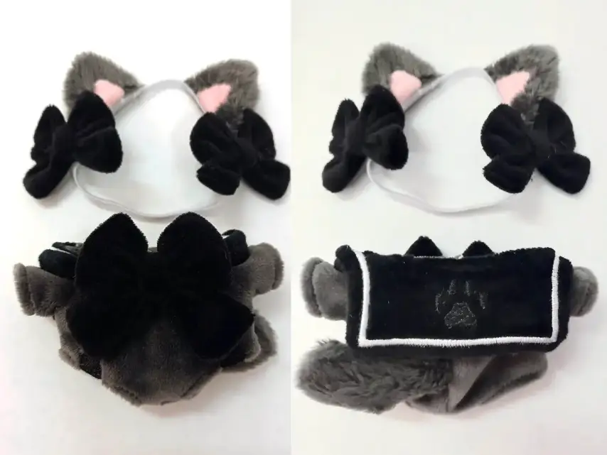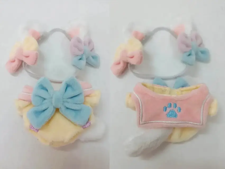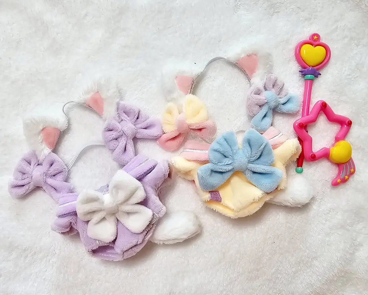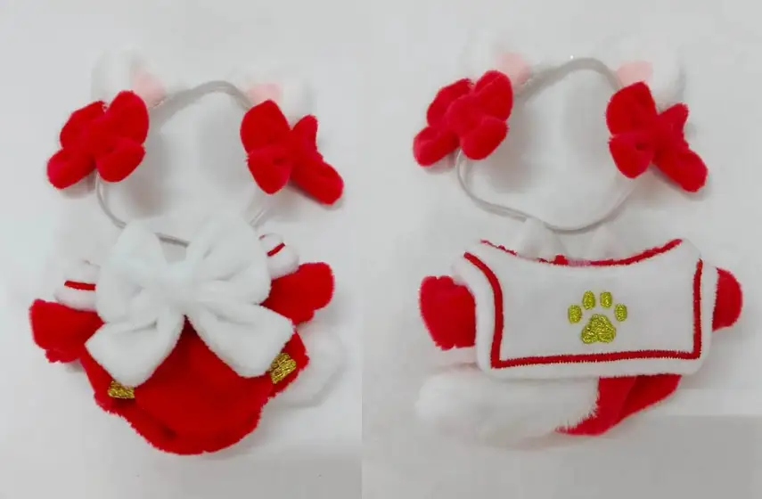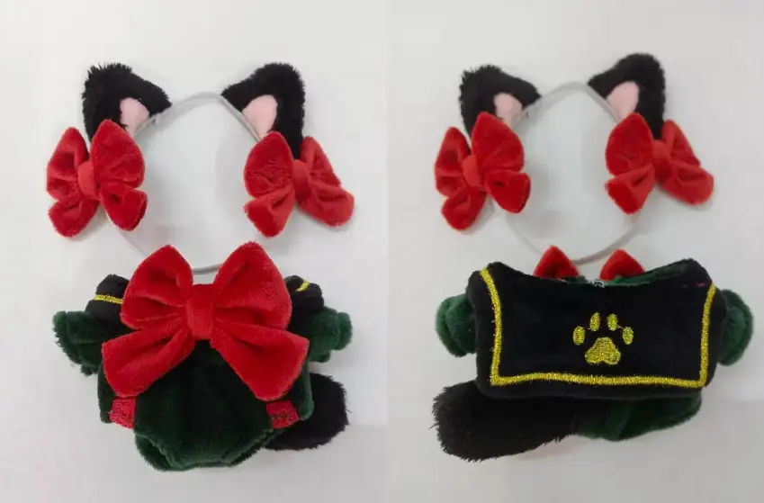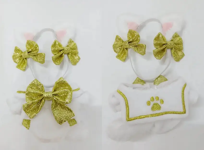 고양이귀(고무줄, 리본 포함) + 점프수트 타입 원피스(꼬리 고정)