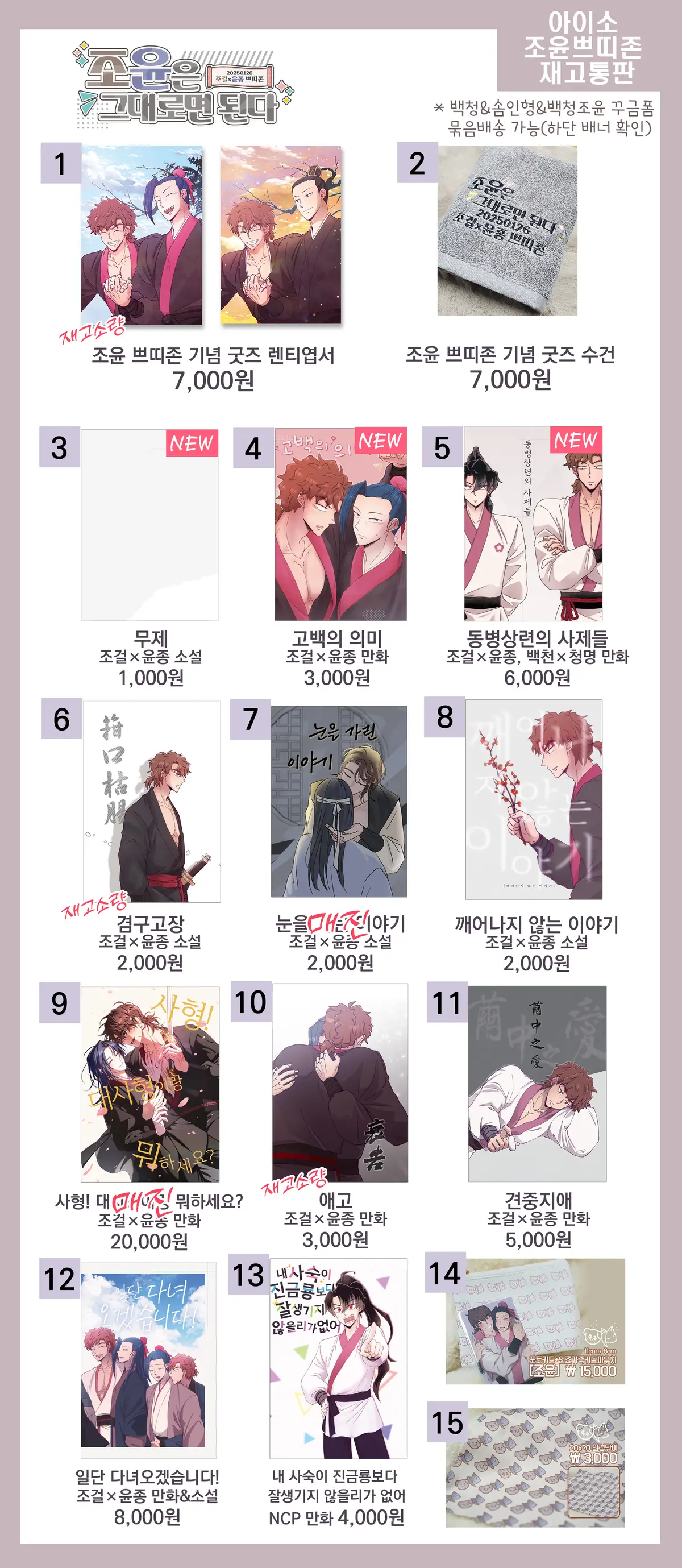 (주의) 조걸윤종 신간 중 백천청명이 함께 섞인 회지가 있습니다.