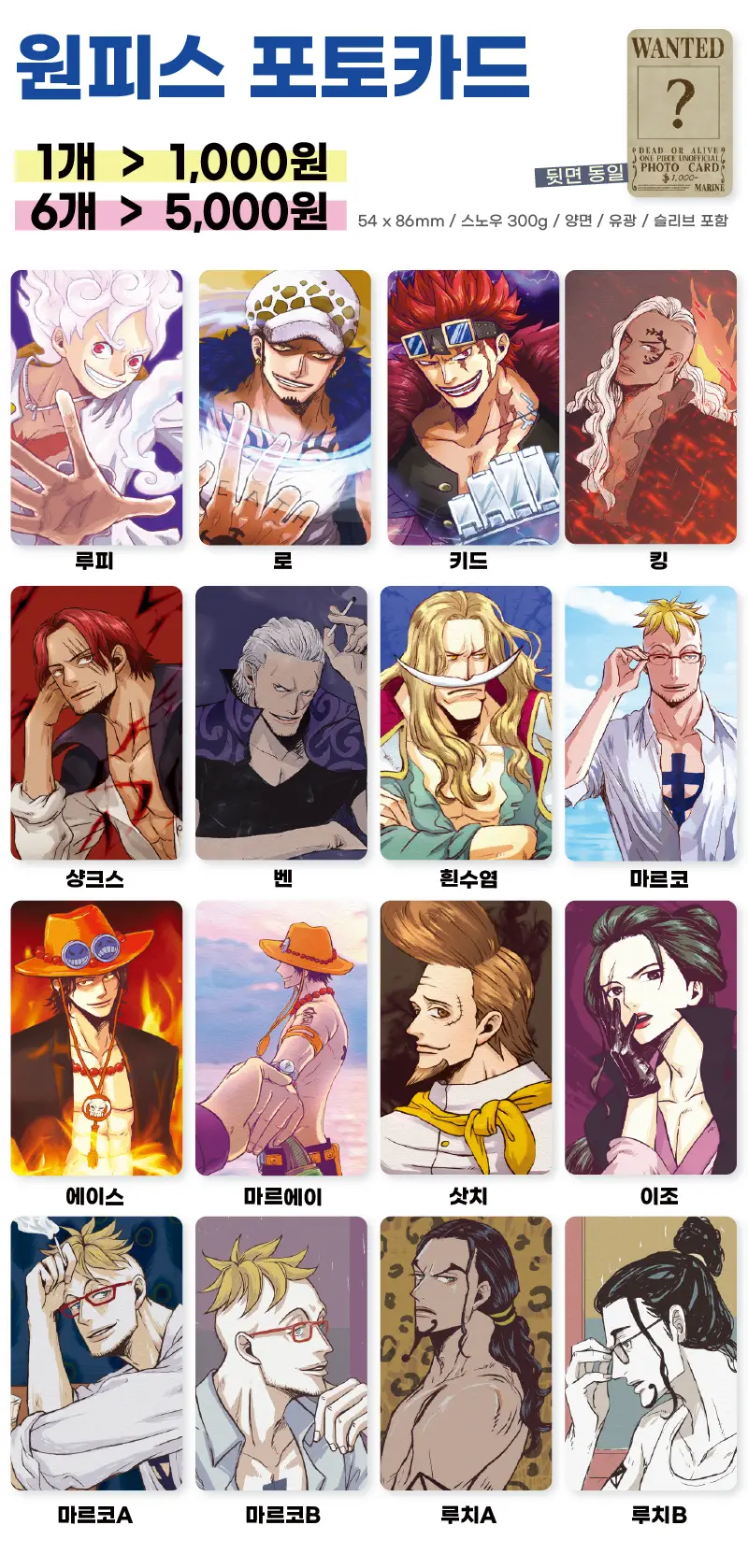 원피스 포토카드 (포카) 굿즈 재고 통판 폼입니다.