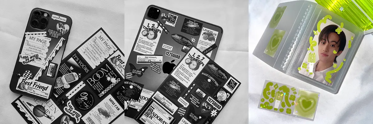 모든 버전이 리무버블 용지로 제작되어 폰, 노트북, 액세서리 등 매끈한 곳에 끈적임 없이 떼었다가 붙일 수 있습니다 :)