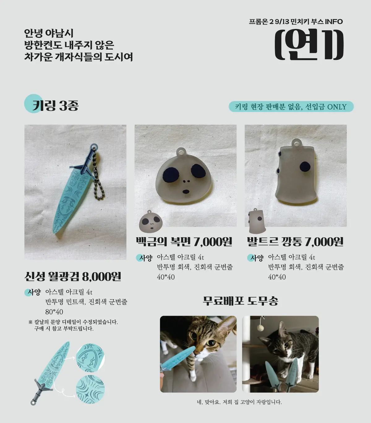 키링은 선입금만 받으며 현장판매는 없을 예정입니다.