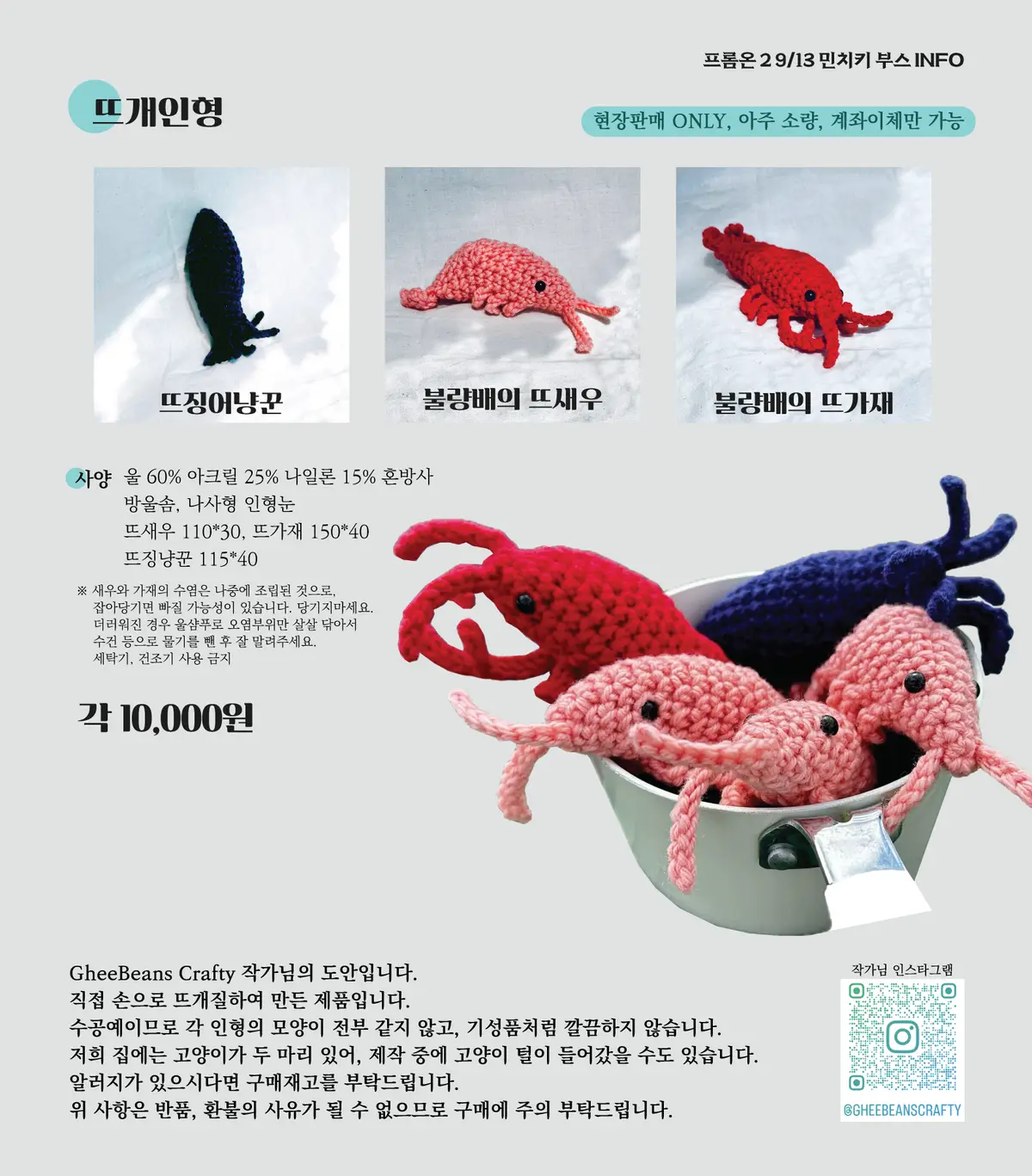 뜨개인형은 현장판매만 예정이며, 소량일 예정입니다.