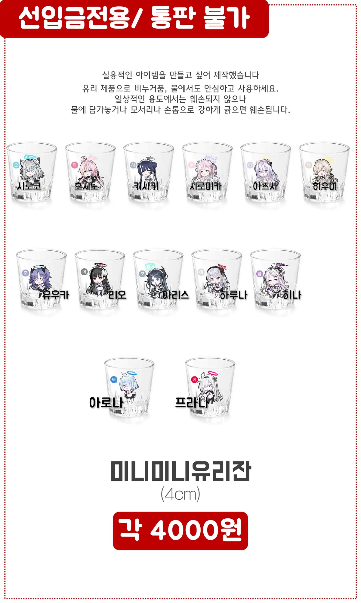 미니미니유리잔은 현장판매 하지않고 선입금만 받습니다