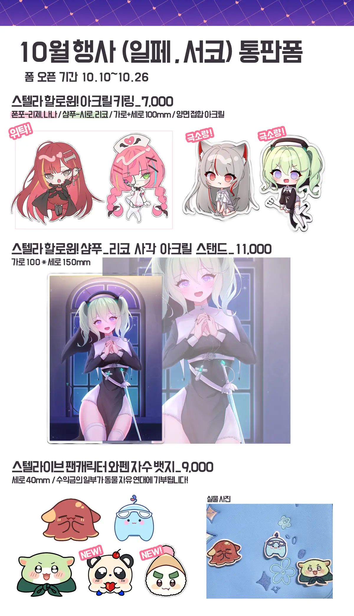 10월 행사(일페, 수코)에서 판매한 스텔라이브 굿즈 통판폼 입니다🥺💚